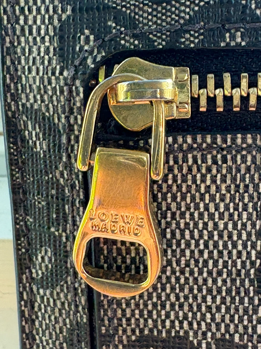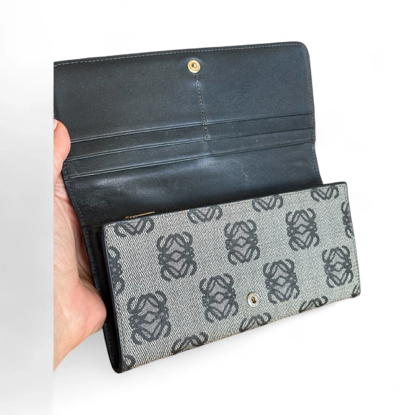 Selling a gently used Loewe wallet! It features the iconic Anagram pattern in a neutral colour. It's a trifold style, perfect for keeping your essentials organized. There's a zippered compartment on the back for coins