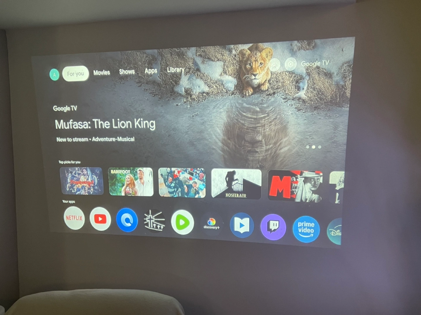 1080 projector and onn Android TV 4K Streaming device