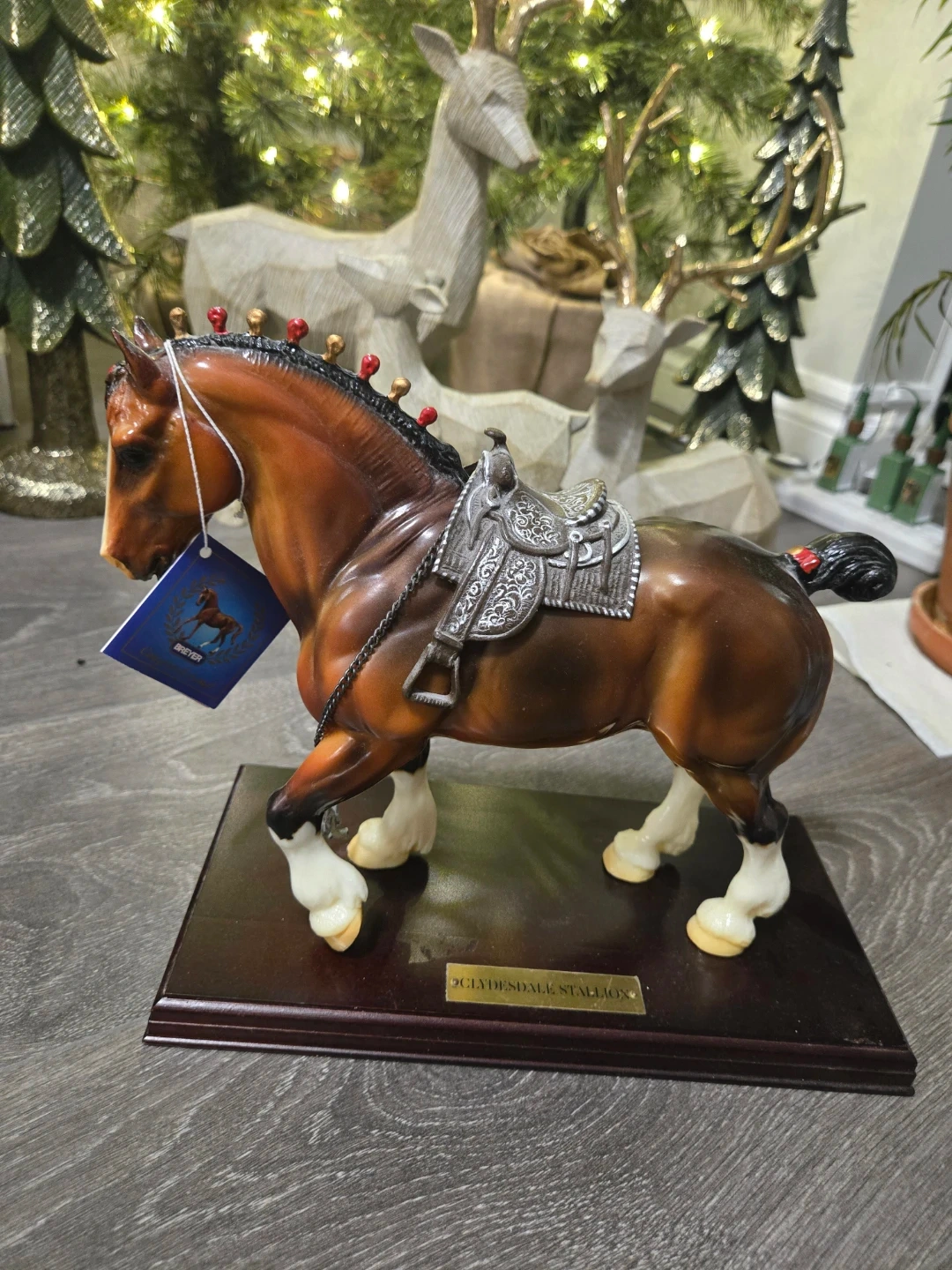 Selling a Breyer Clydesdale Stallion model horse. It's in great condition and would make a lovely addition to any collection! Comes with a wooden stand. Makes a great gift for horse lovers.