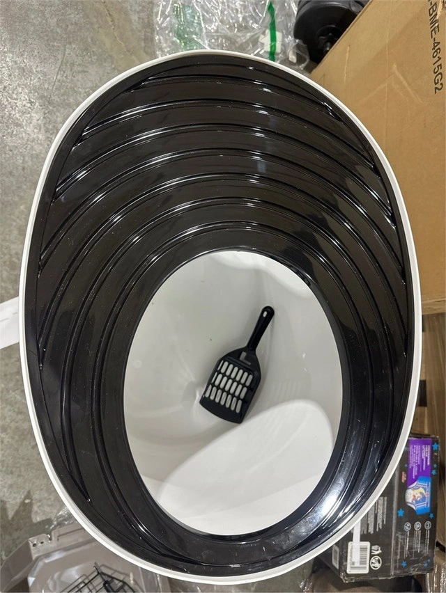 New in open box, complete. Pickup is near Kipling and Evans. This large litter box has overall dimensions of 37.1 cm L x 52.7 cm W x 41 cm H with an entry opening of 22.9 cm x 26.7 cm. The top entry design provides privacy for your cat, reduces litter spillage, and contains odors. The lid's grooves trap litter from your cat's paws, keeping the floor tidy. The included scoop hooks around the lid for convenient storage. Cash and cashless payments are accepted.