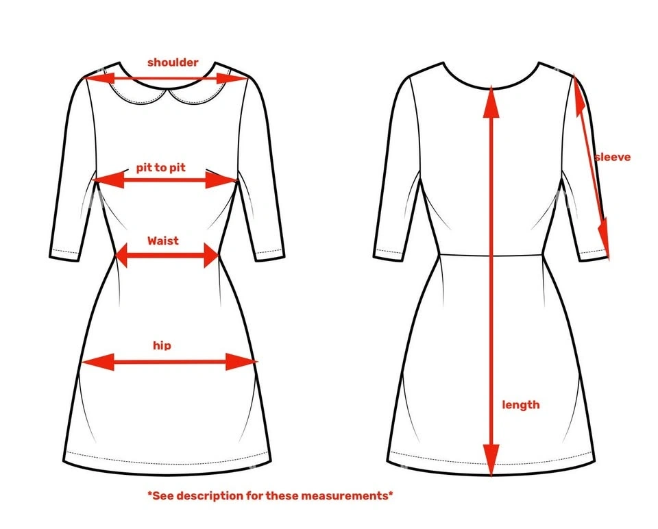 Zipper closure. Flat garment measurements (approximately): Pit to pit: 16.5", Waist: 14", Hip: 17", Length: 33.5". Machine wash with similar colors. Hang to dry. Locally and ethically made by my mum. Pick up in River District.