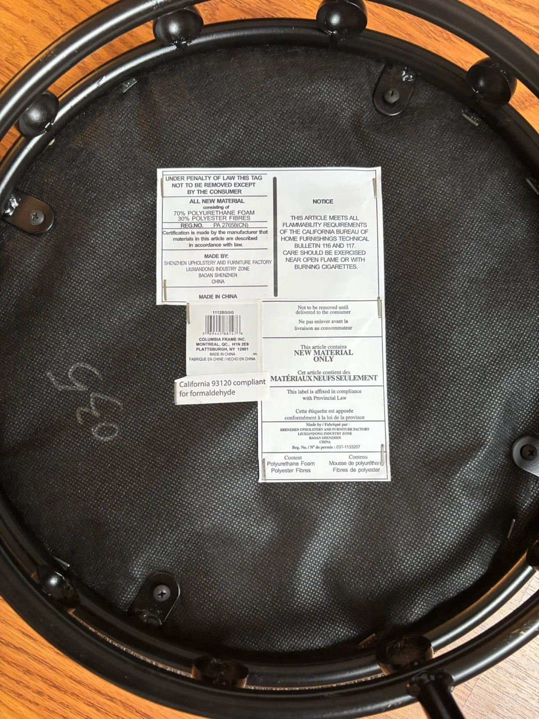 Selling a cute upholstered stool with a striped pattern! It's in great shape and would be perfect as an accent piece or extra seating. The material is a blend of polyester fibres and polyurethane foam.
