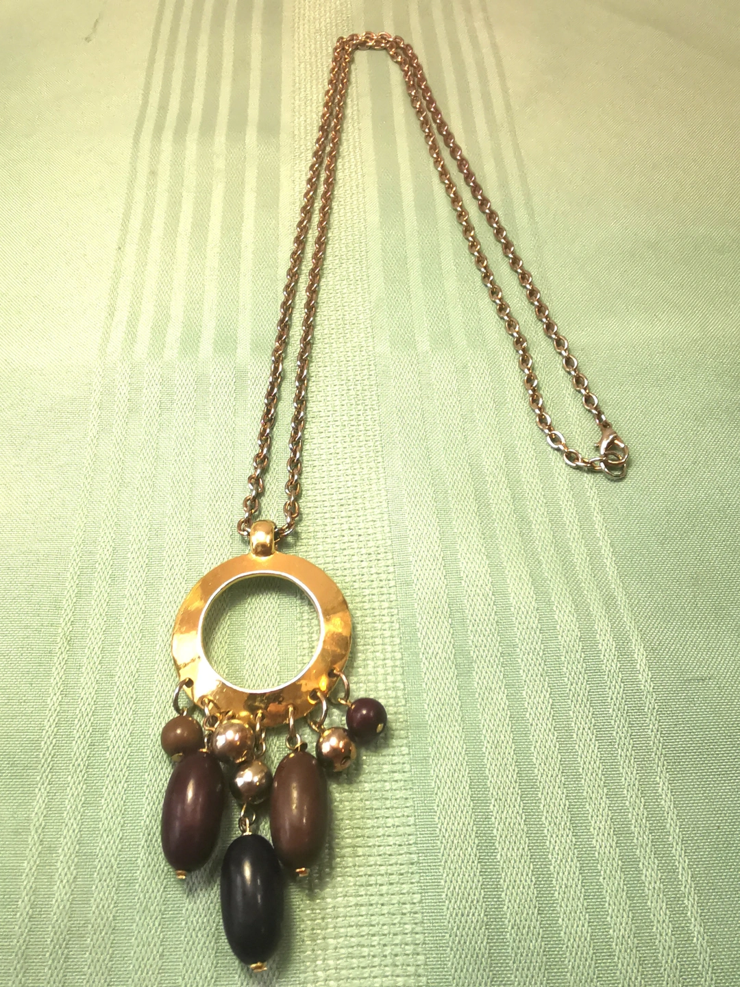 Circa 1972 Long Gold Tone Hammered Circle Tassel Necklace 32"