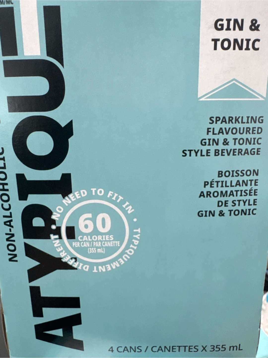 Artyque non-alcoholic sparkling gin & tonic style beverage. It's 60 calories per can. Each can is 355 mL. 4 cans in box 4 boxes available. $5 per box $20 for all 4.