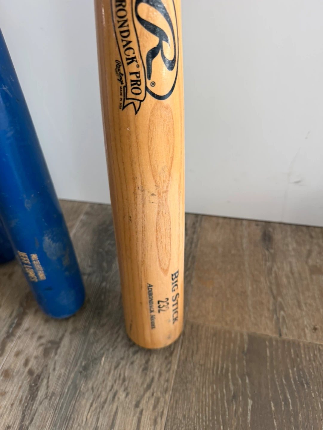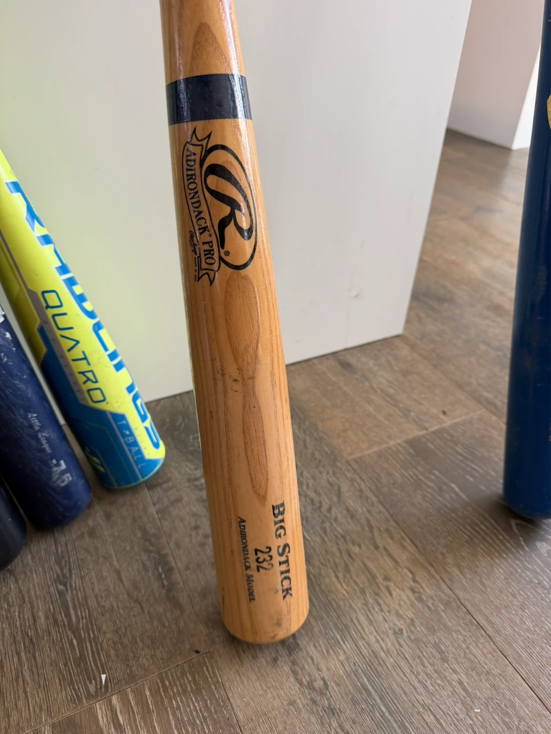 This Rawlings Adirondack Pro Big Stick baseball bat is 32 inches long. It's made of wood and features the "BIG STICK 232" model name. This bat is suitable for baseball players.