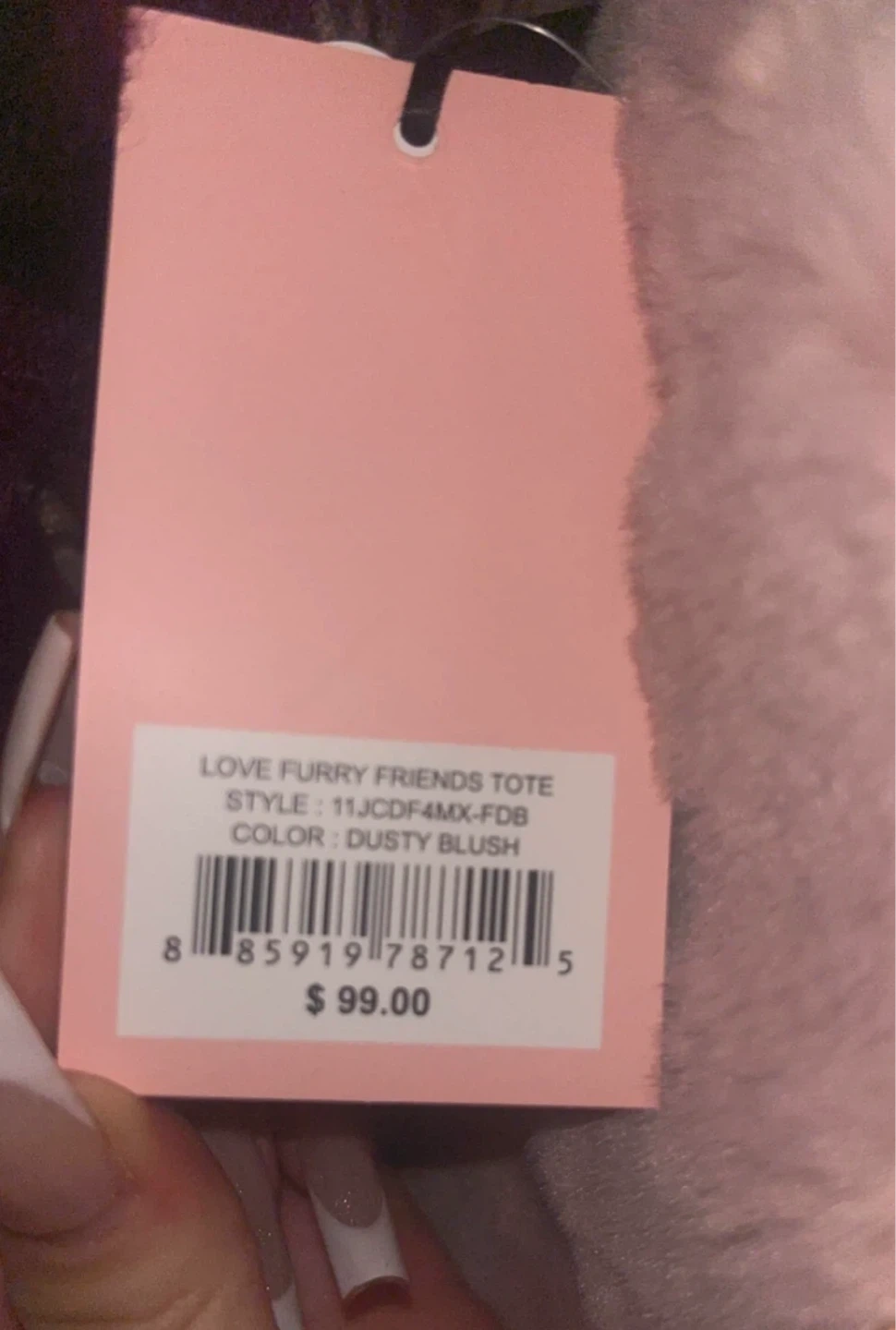 This is a new Juicy Couture Love Furry Friends tote bag. It's a dusty blush pink colour with gold chain details. The bag is made of soft faux fur.