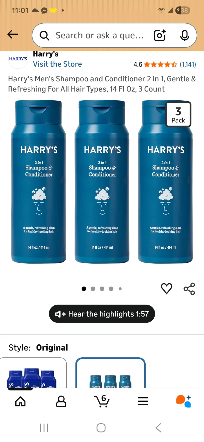 This is a 3-pack of Harry's 2-in-1 Shampoo & Conditioner. Each bottle contains 14 fl oz (414 ml). It's a gentle, refreshing clean for healthy-looking hair.