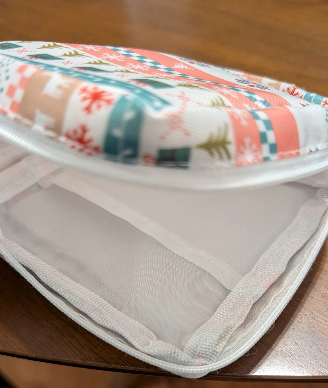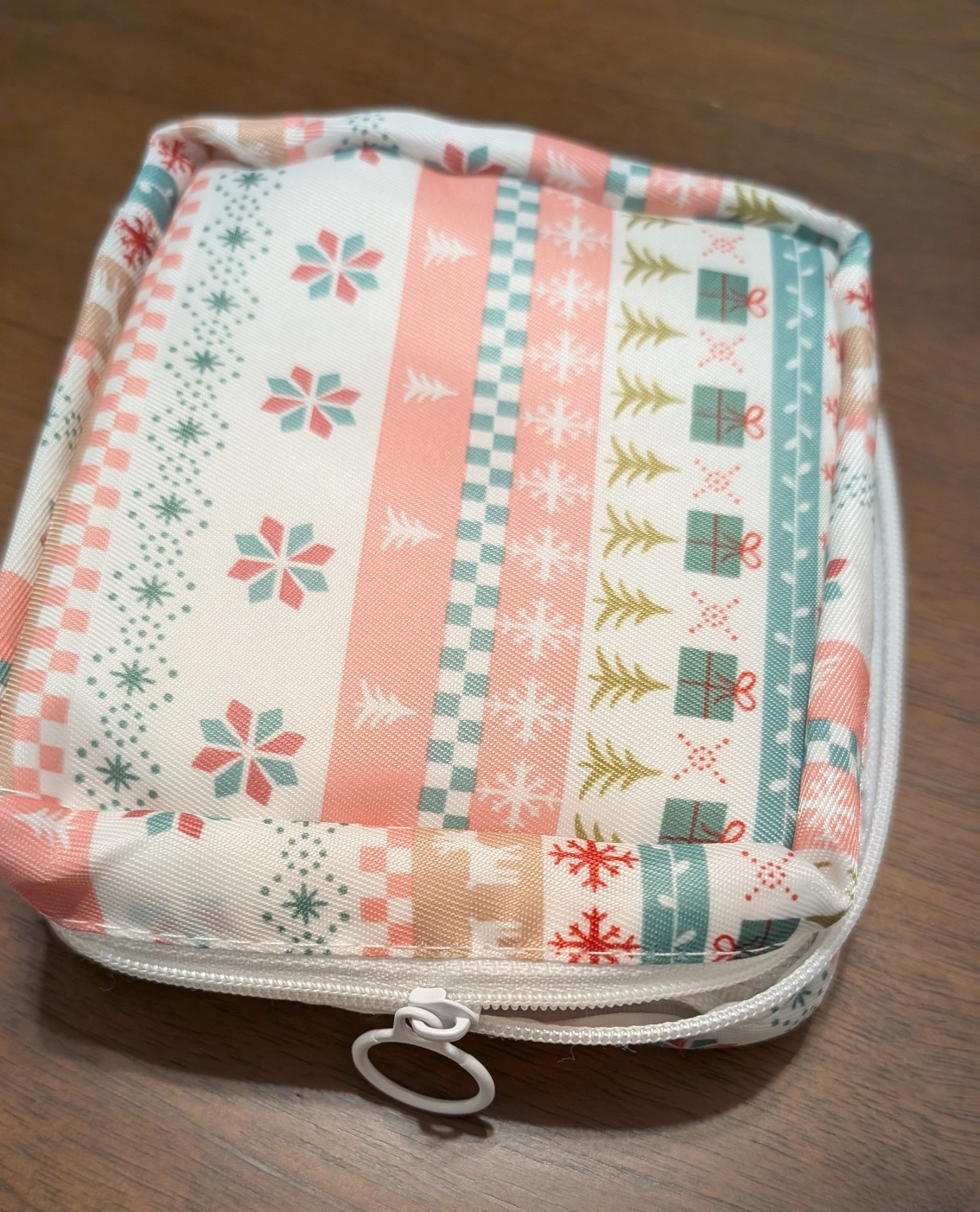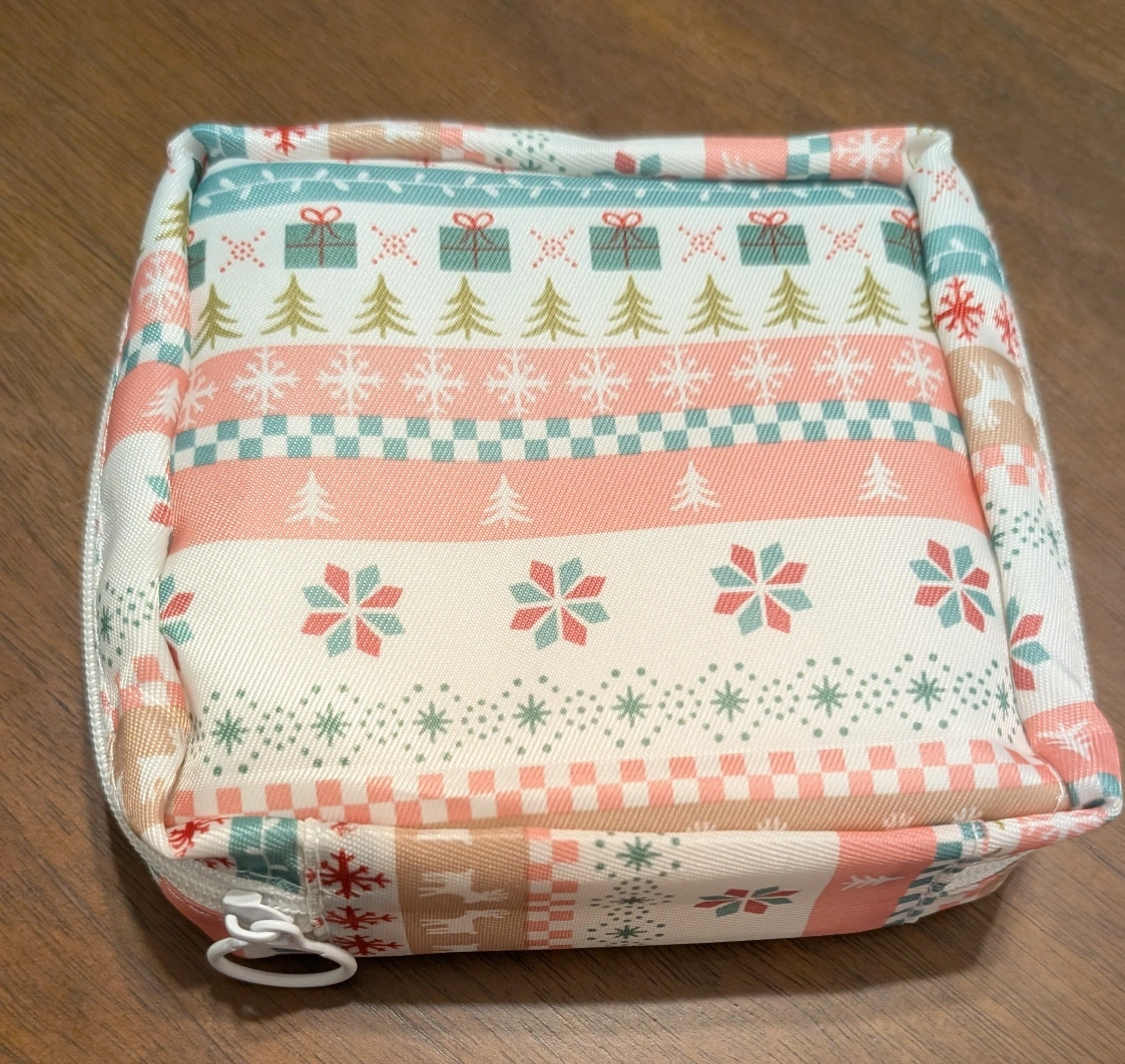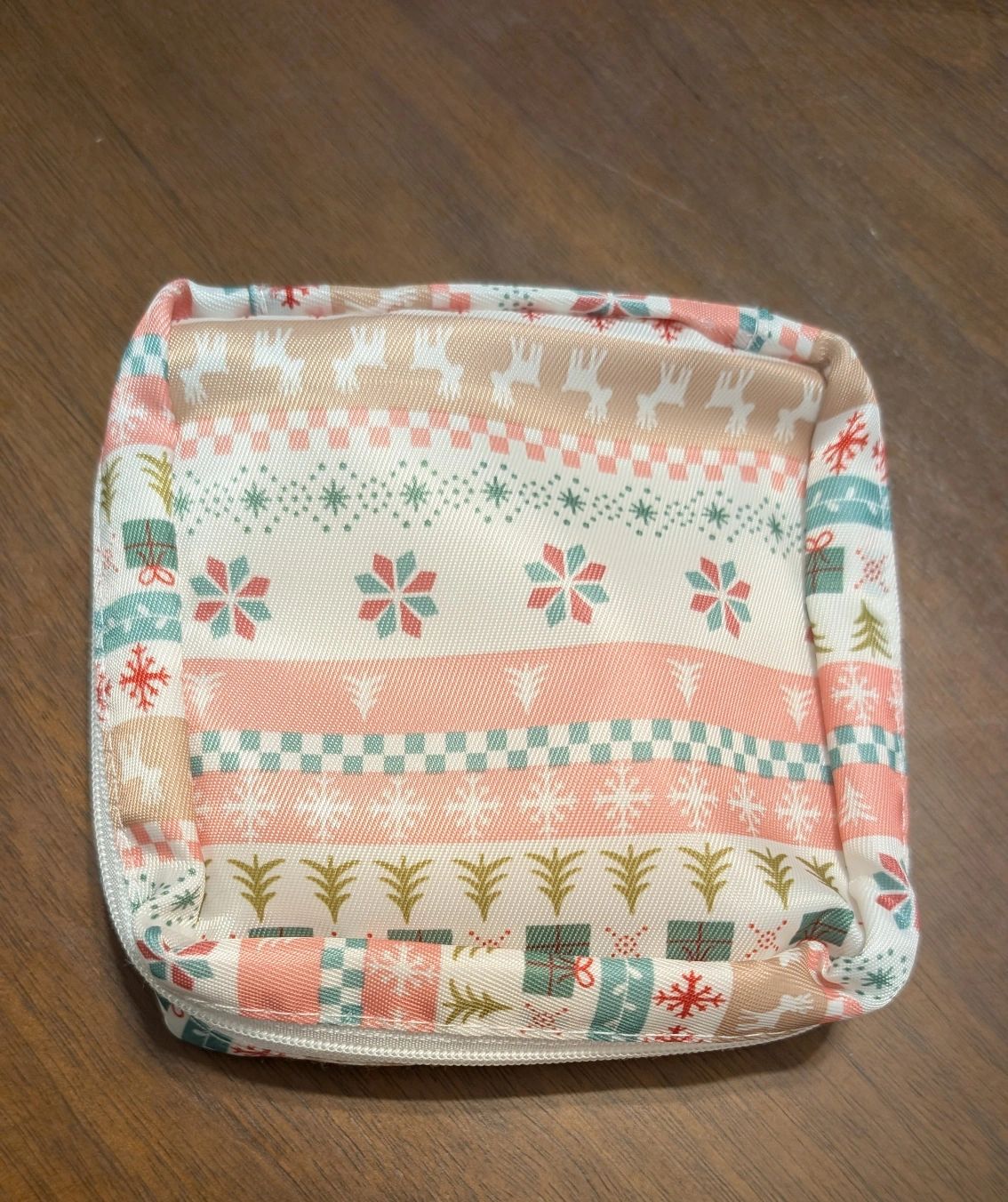 Cute zippered pouch with a festive Christmas pattern! It's perfect for storing small items or using as a travel organizer.