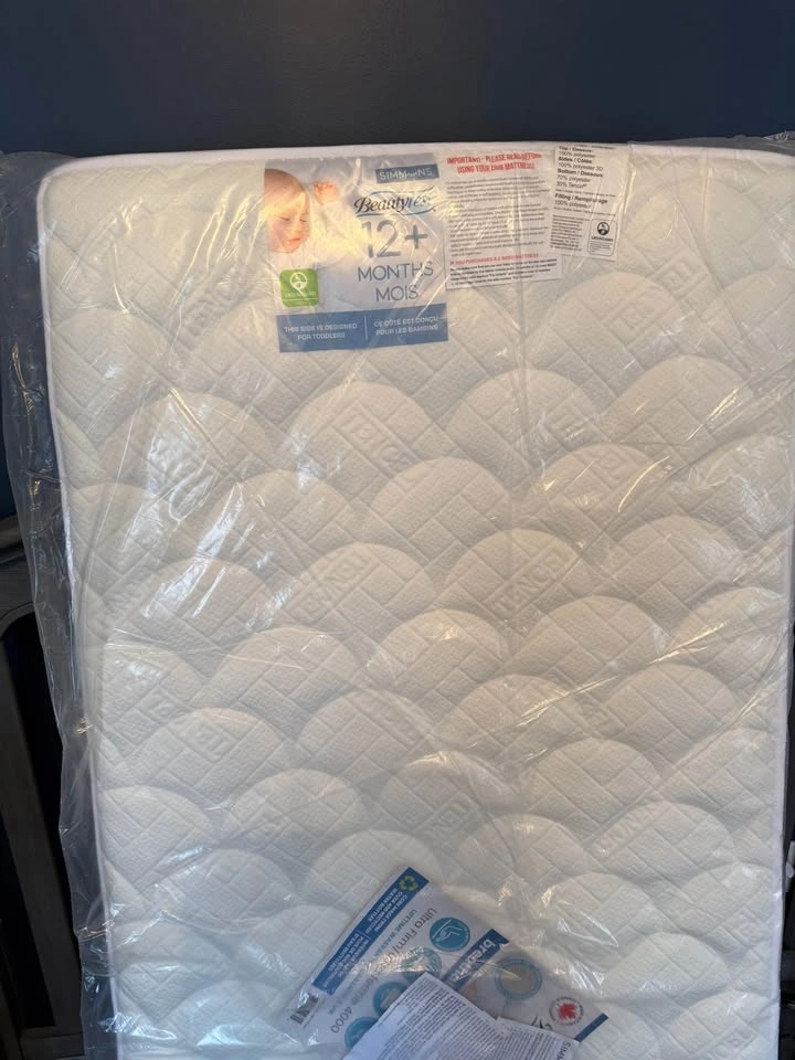 Originally paid $2000. This is the crib piece (not shown) the toddler bed attachment. The dresser can be used alone or with the change table attachment. Lastly the Simmons Beautyrest mattress still sealed - one side for babies up to 12 months and the other for toddlers 12+ months. I also have a Kushies changing pad in mint condition if you wanted for an additional price. Located at Yonge and Elgin Mills. Pick up only.