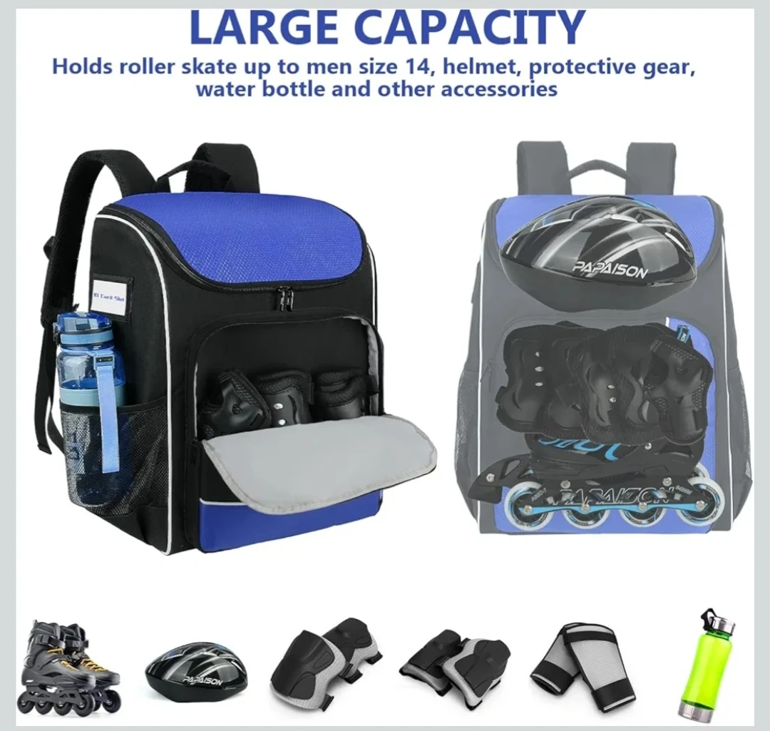 Roller Skate Bag, Ice Skate Backpack Fits Shoes Up to US Men ...