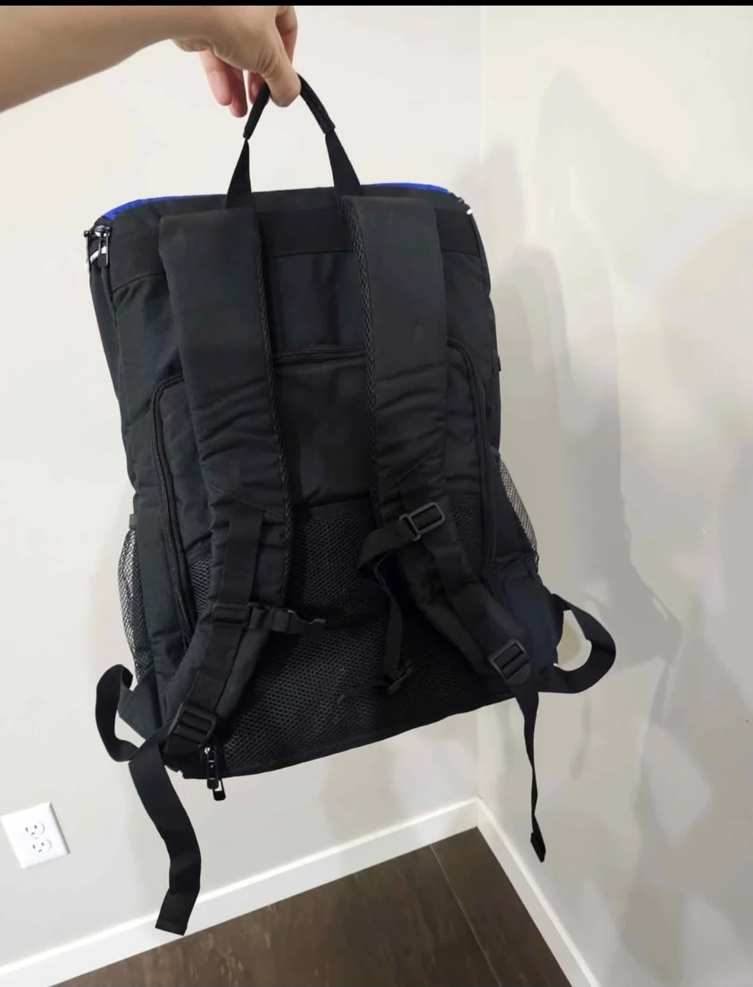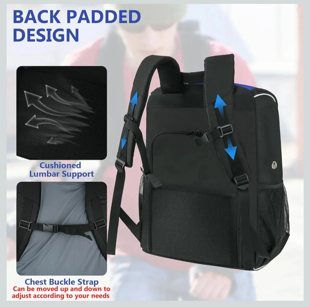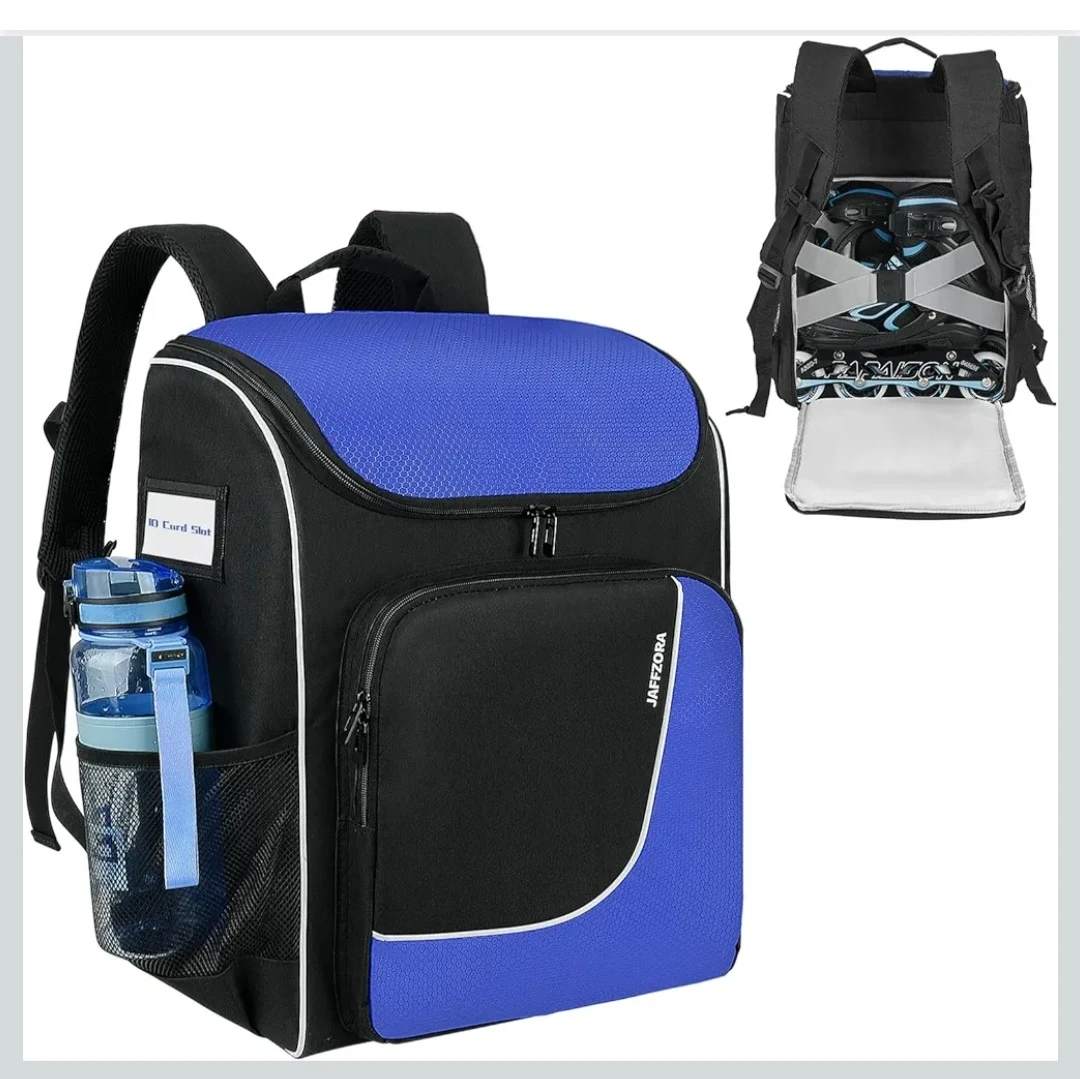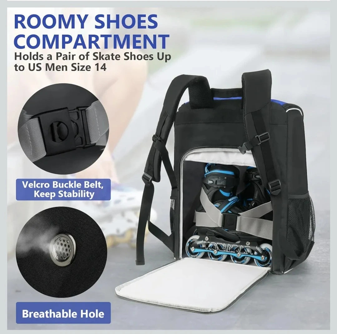 Roller Skate Bag, Ice Skate Backpack Fits Shoes Up to US Men Size 14, Figure Skating Bag with Multi-Pockets for Men, Black&Blue
