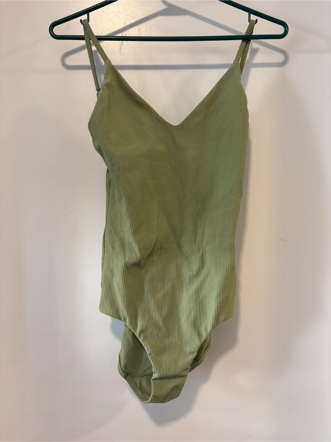 Selling a Lululemon Poolside Pause One-Piece swimsuit in Vista Green, size 4! This one-piece swimsuit is made with ribbed swim fabric. Originally priced at $128, it's such a stylish choice which I’ve sometimes paired with shorts during a beach day.