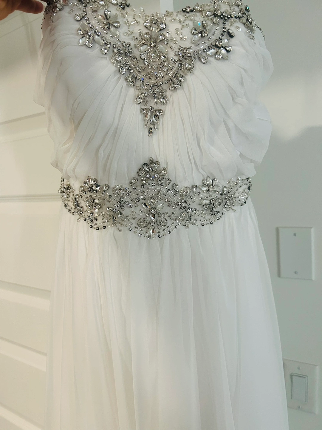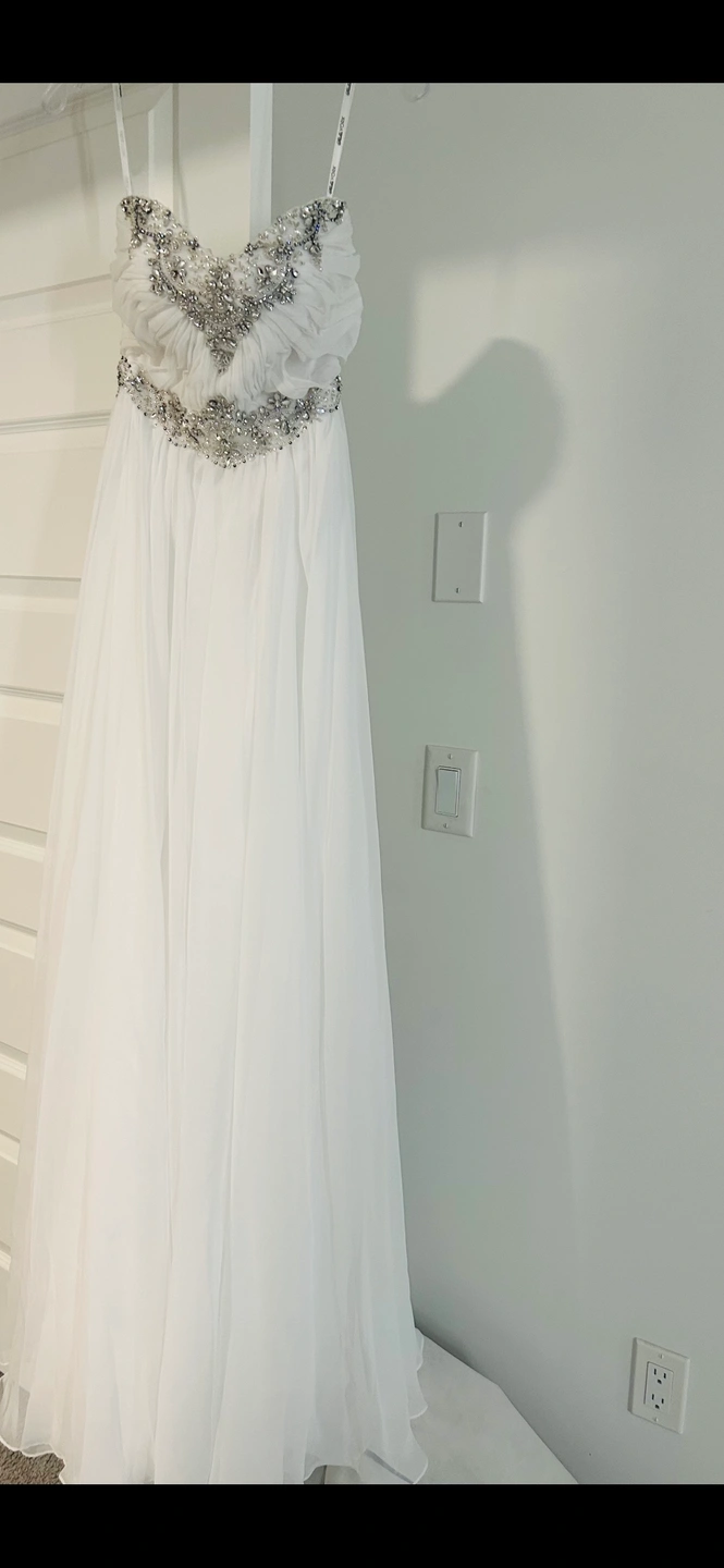 ✨New never worn . Beautiful white stunning dress with a sweetheart neckline and rhinestone detail. This dress is perfect for a formal occasion. It features a fitted bodice with a flow. The dress is fully lined and has a zipper closure at the back.I bought originally for a gala where required to wear ballroom dress . But didn’t wear choose another dress. It’s actually a wedding dress paid 2500 for it selling at amazing price or best offer . As never worn it’s been dry cleaned and hemmed in perfect condition as never worn . Size and tags still on see photos at this absolutely stunning dress , feel like a goddess this is the dress for you .
