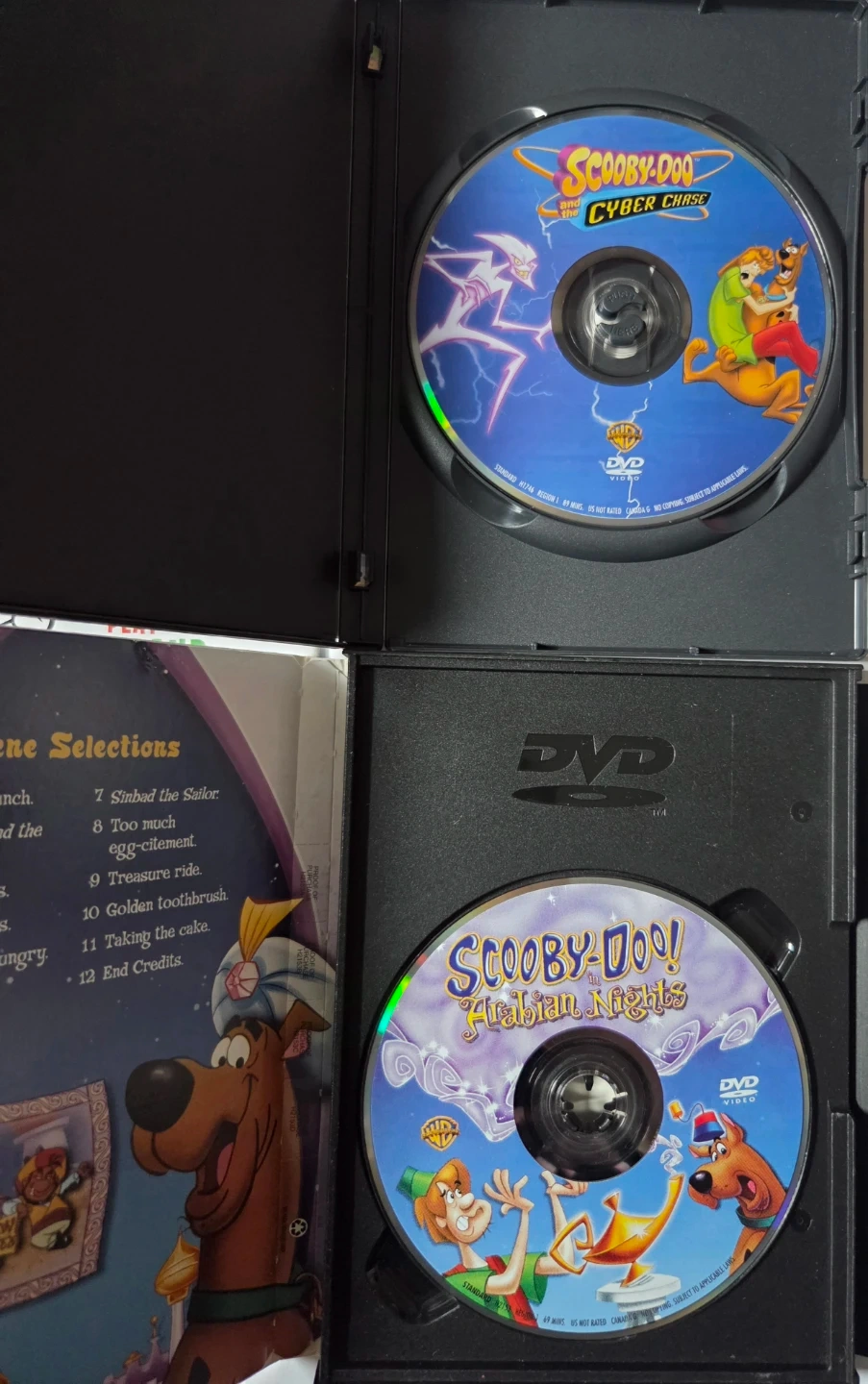 Hi, I'm selling a Scooby Doo magazine and 2 Dvds: Cyber Chase and Arabian Nights. Dvds are in OK condition and still play.