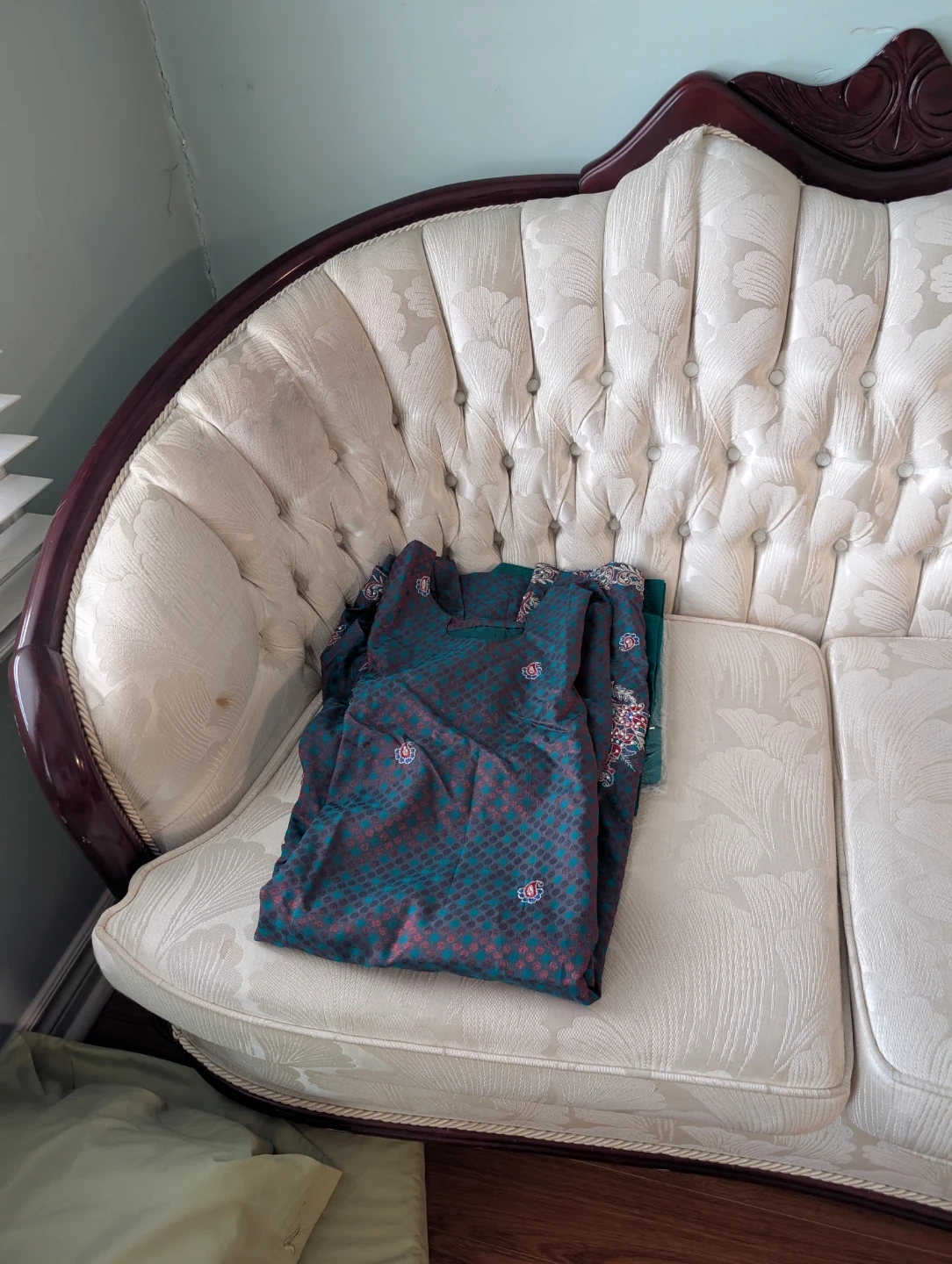Four colourful embroidered shalwar kameez tops in various styles and colours. Includes red, yellow, teal, and beige options with intricate beadwork and embroidery. These would be great for cultural events or everyday wear!