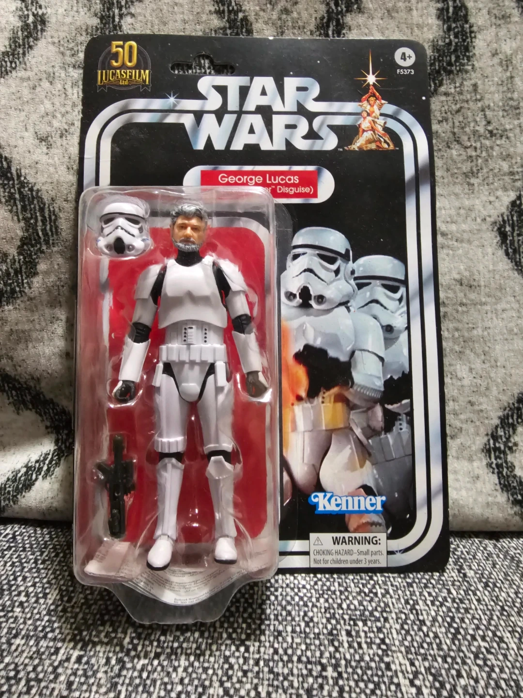 This Star Wars action figure depicts George Lucas in disguise of being a Storm Trooper. This figure is part of the Kenner line.
