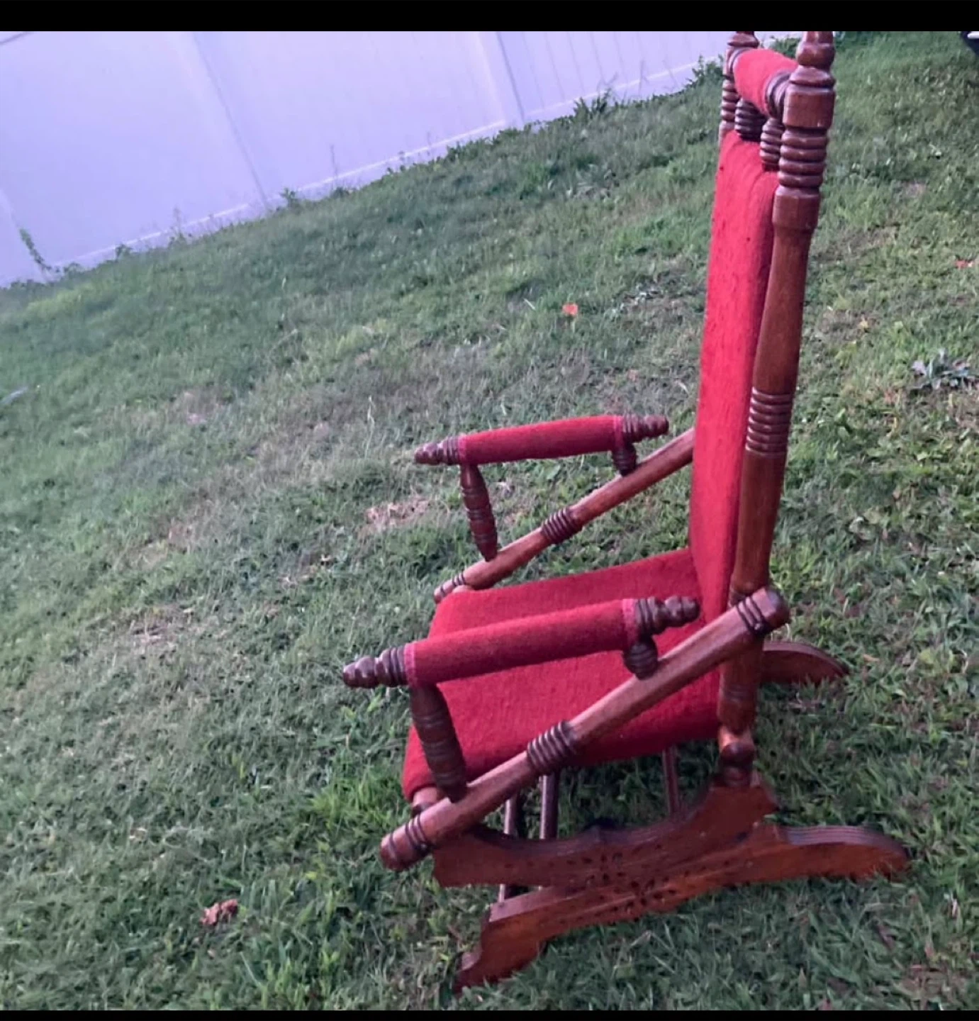 Antique Wooden Rocking Chair - Red Upholstery