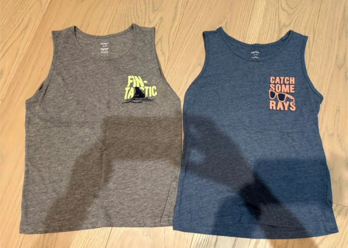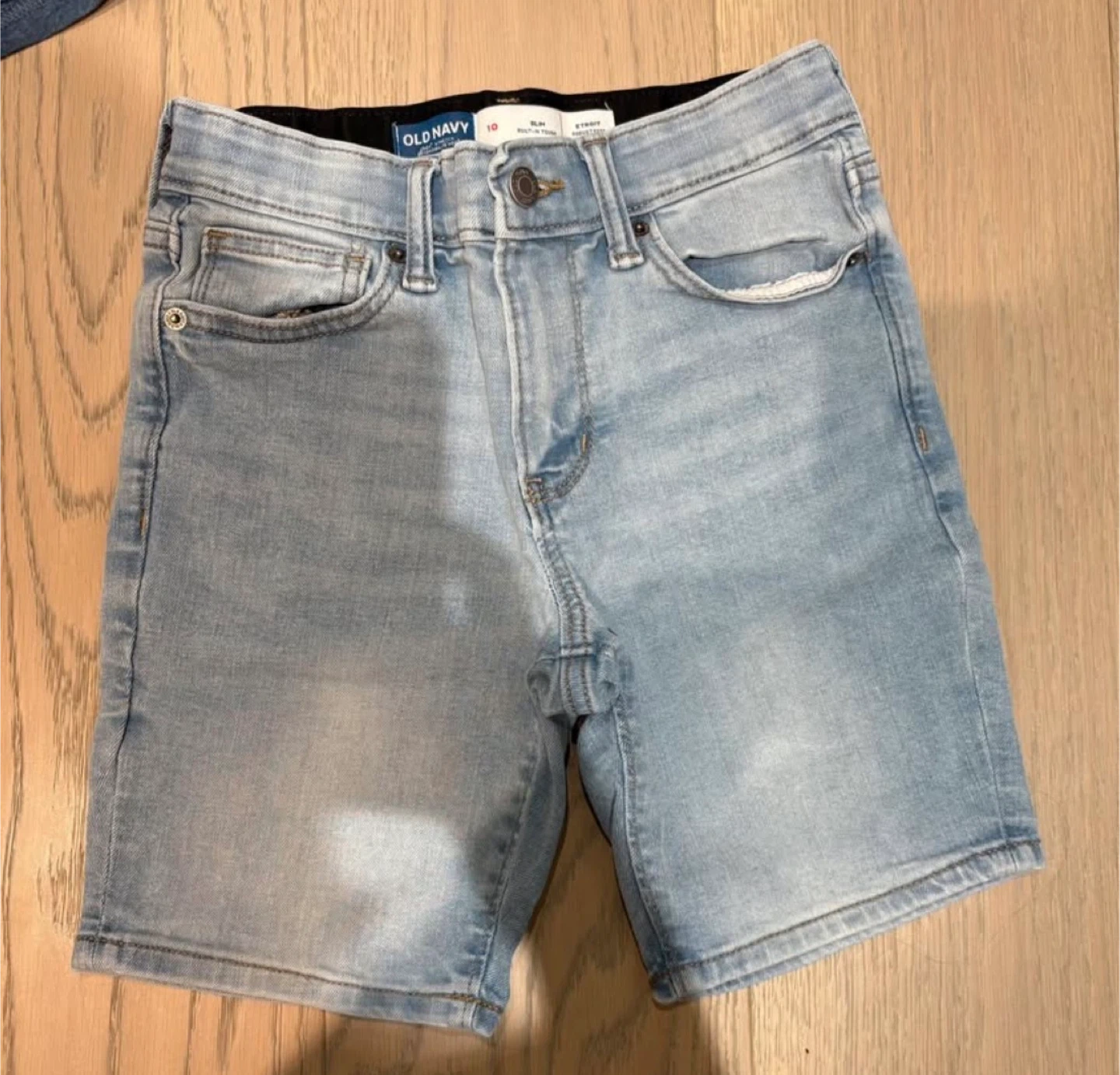 Selling a collection of boys' clothing, including a pair of Old Navy jean shorts in size 10! They are a light wash denim colour. Also included are two tank tops and a patterned t-shirt.