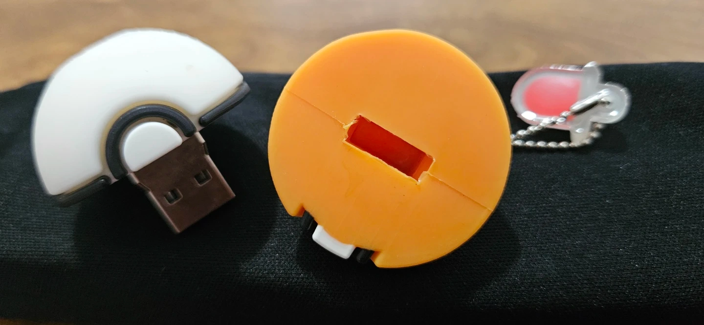 This unique 60 GB USB flash drive is designed to look like a Poké Ball. It comes with a protective cap and a keyring attachment. Stores your important files in a fun way!
