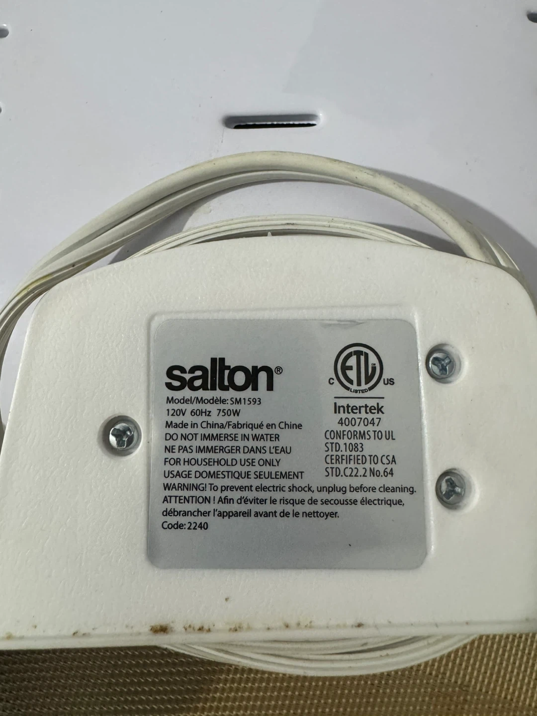 Salton Essentials – Sandwich Grill (White) | Used One | With Box
