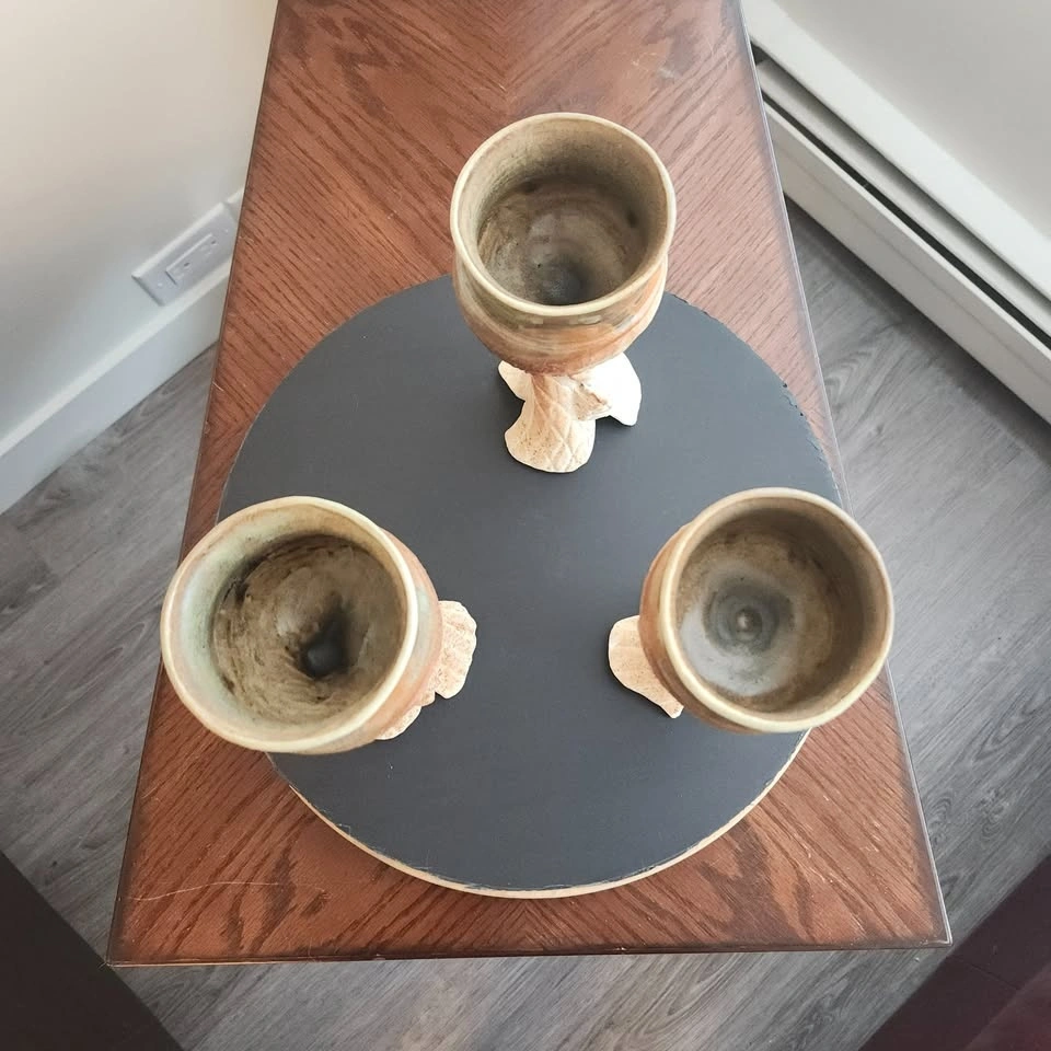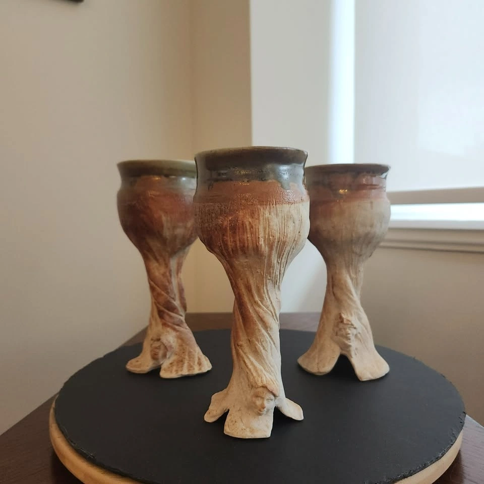 π₯ 3 Hand Crafted Clay Goblets, with Woodland Character Face π₯