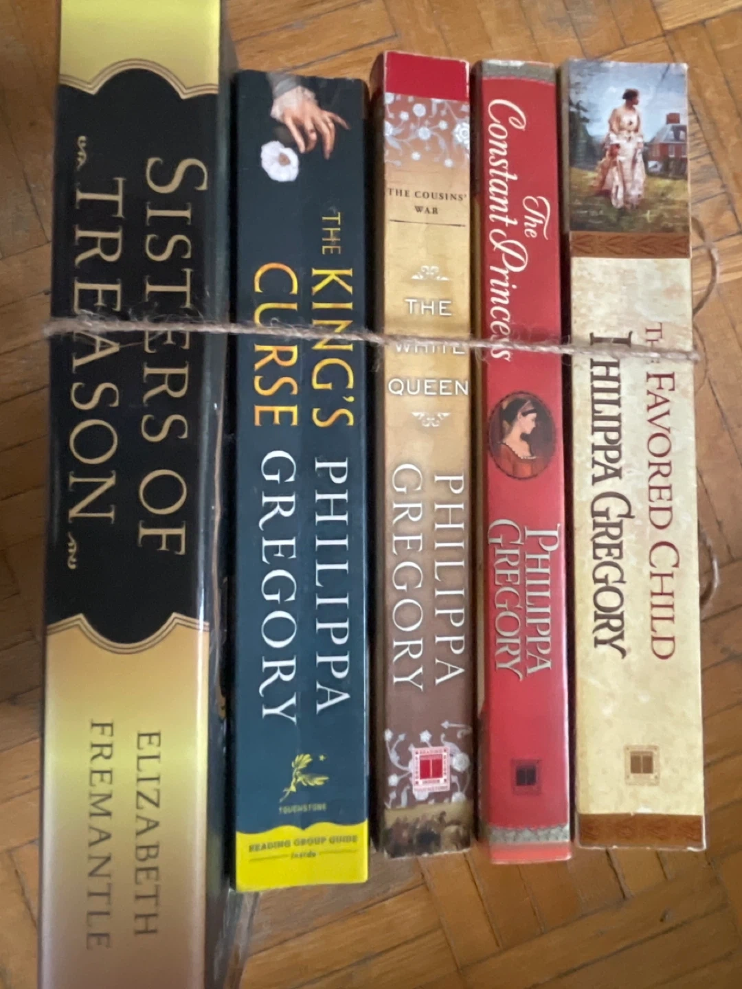 Bundle of five paperback historical fiction novels. Includes "Sisters of Treason" by Elizabeth Fremantle and four books by Philippa Gregory: "The King's Curse", "The White Queen", "The Constant Princess", and "The Favored Child". Great for historical fiction fans!