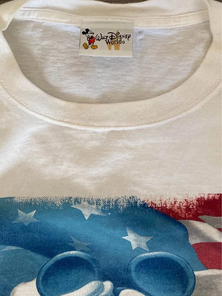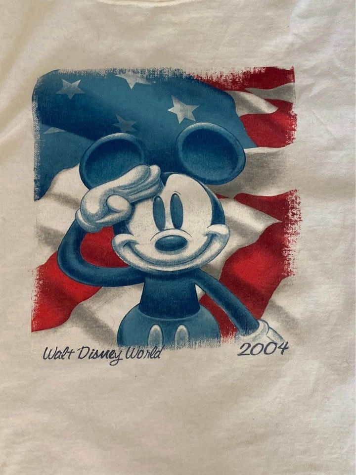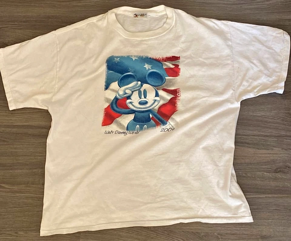 2004 Mickey Mouse American Flag Salute Y2K White XL Vintage T-Sh
