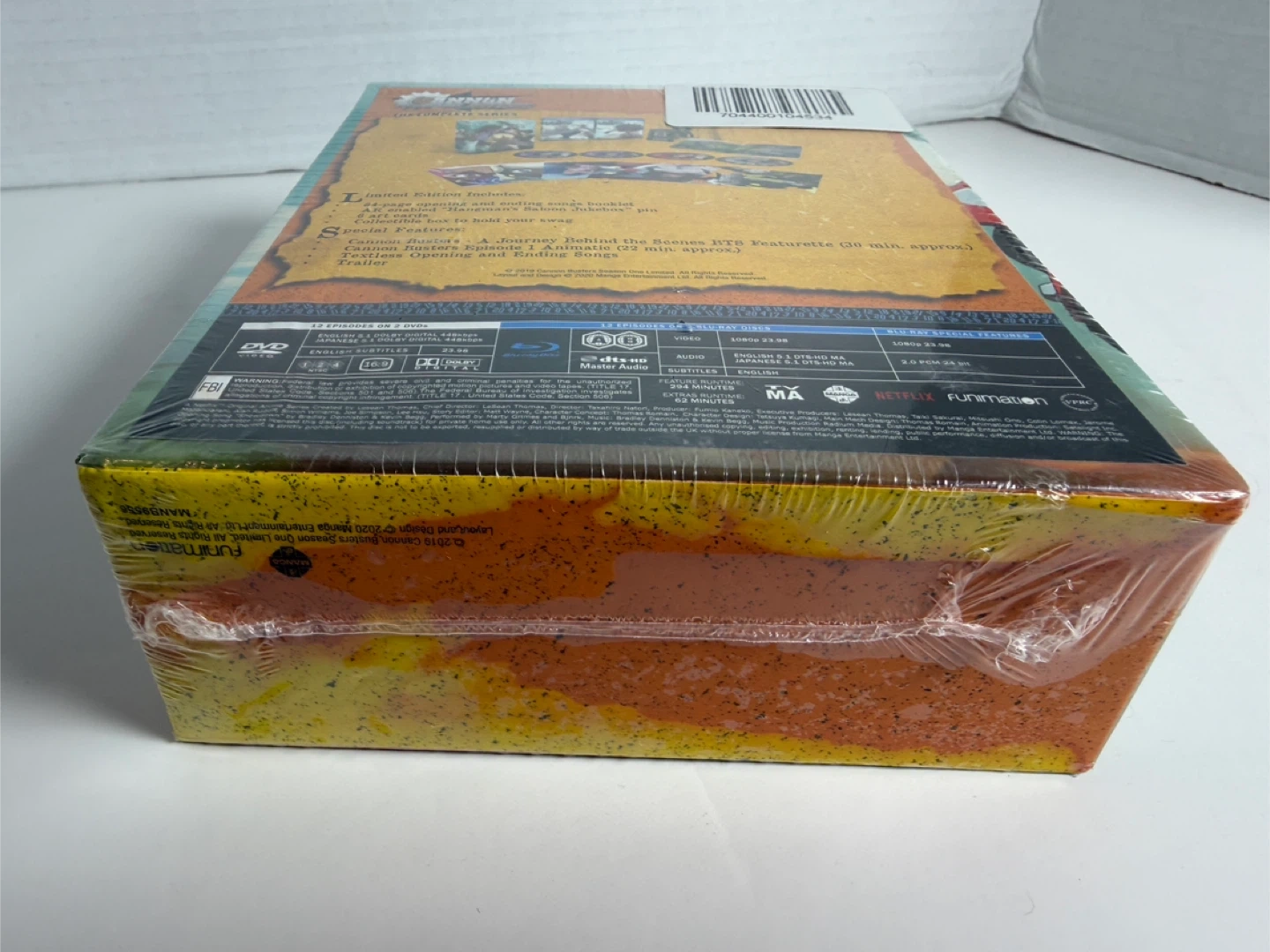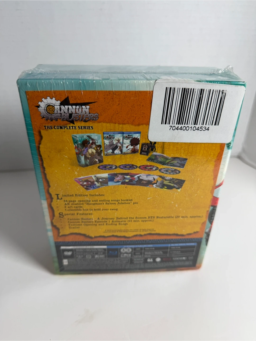 This is the complete series of Cannon Busters on Blu-ray and DVD. It includes a 64-page opening and ending songs booklet, a collectible box, and a pin. The special features include A Journey Behind the Scenes BTS Featurette and Cannon Busters Episodes. It's a must-have for fans!