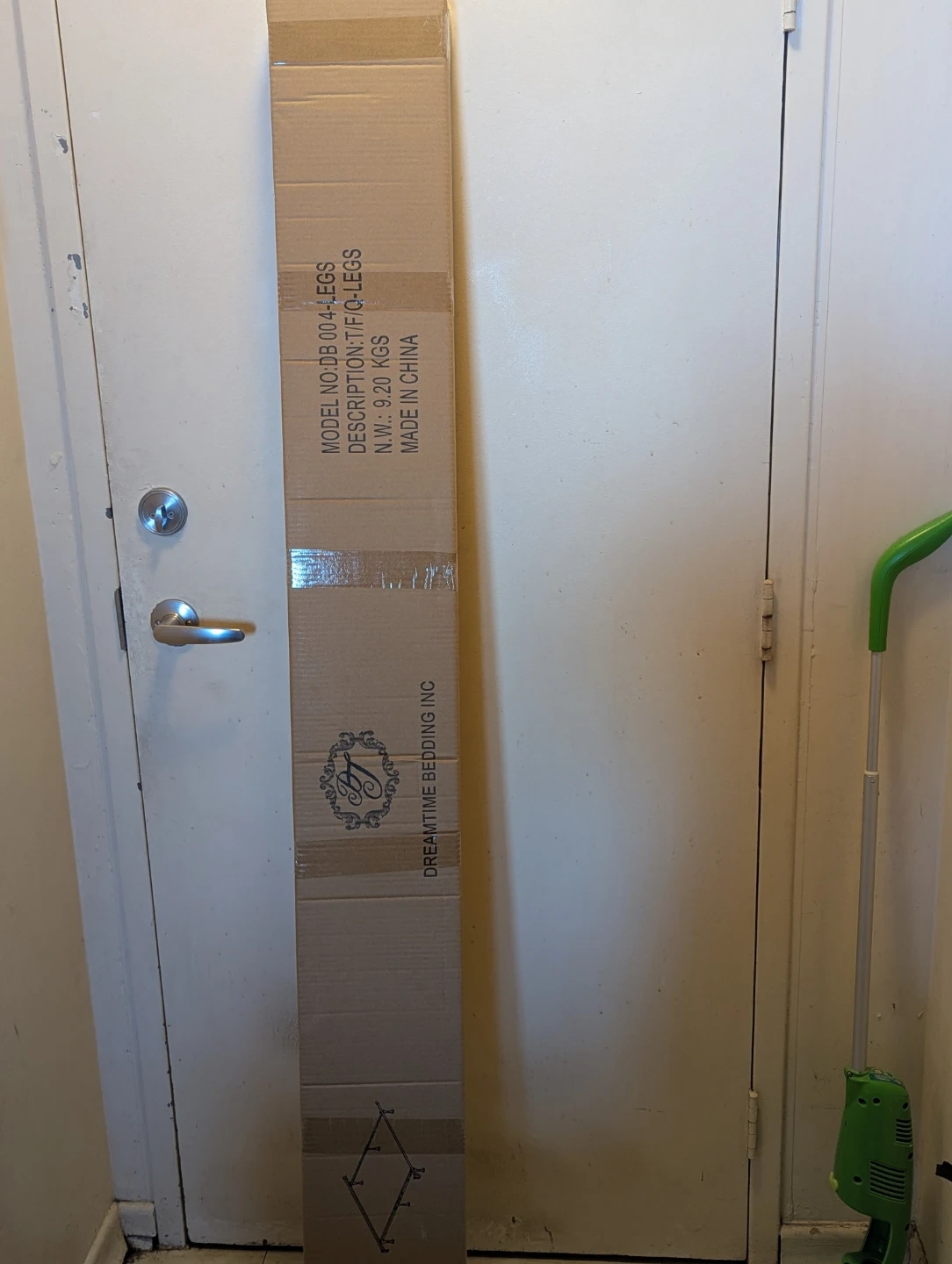 Dreamtime Bedding Inc.Othopefic mattress, box spring for sale an bedframe Model NO. BJB104-LEGS. weighs 9.20 KGS. The Mattress says orthopedic single but is the size of a twin.The Mattress & box spring is new and still in its plastic wrap and bedframe still in box. I got it given to me brand New & trying to sell it A.S.A.P.