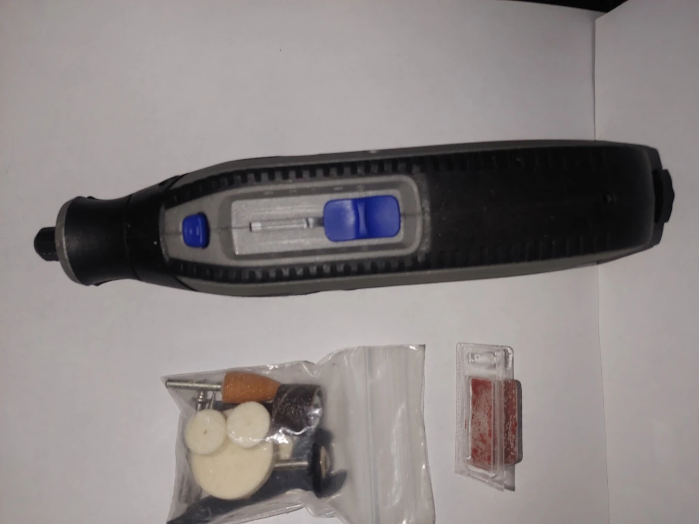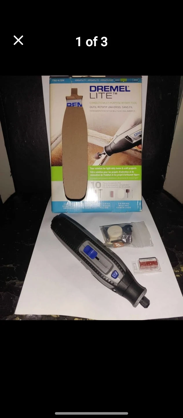 This Dremel Lite rotary tool is designed for light-duty home and craft projects. It includes various accessories for sanding, polishing, and cutting. The tool is powered by a rechargeable battery.