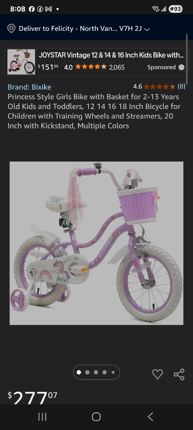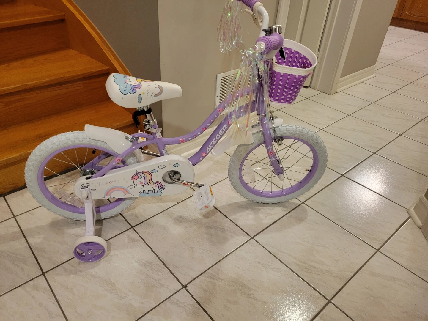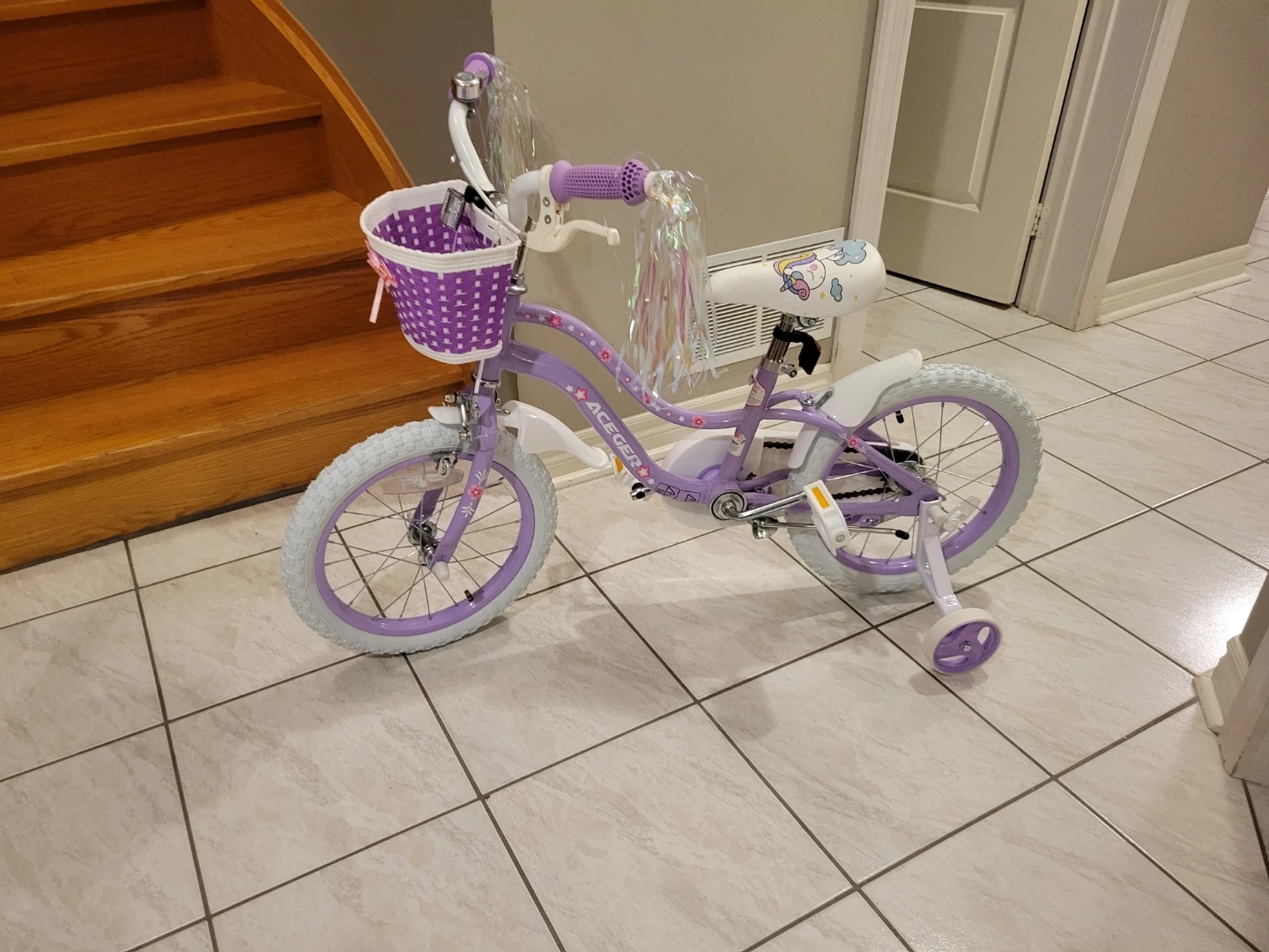 Princess Style Girls Bike with Basket and training wheels "π"