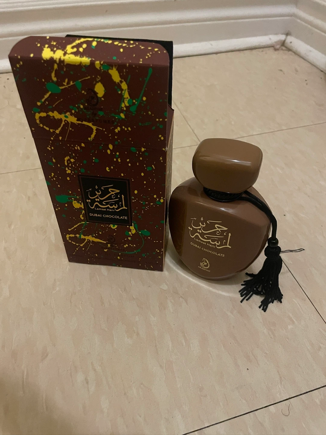Arabiyat Lamsat Hari Dubai Chocolate Eau de Parfum. This scent comes in a 100ml bottle. Natural spray, vaporisateur. It's a unisex fragrance.