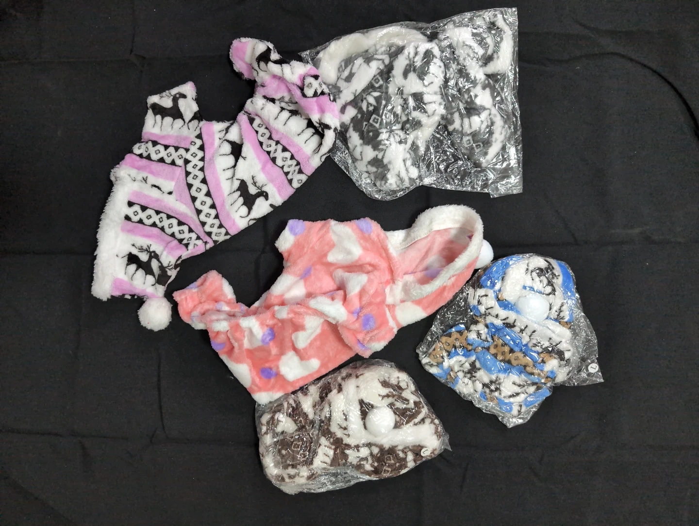 Here's a cozy dog onesie in a fun pattern of pink, white, and black! It's perfect for keeping your furry friend warm on chilly days or nights. It is ready for a new pup to enjoy. Size Selection XL(front legs to butt 14") and L(front legs to butt 11" ),5 color patterns.