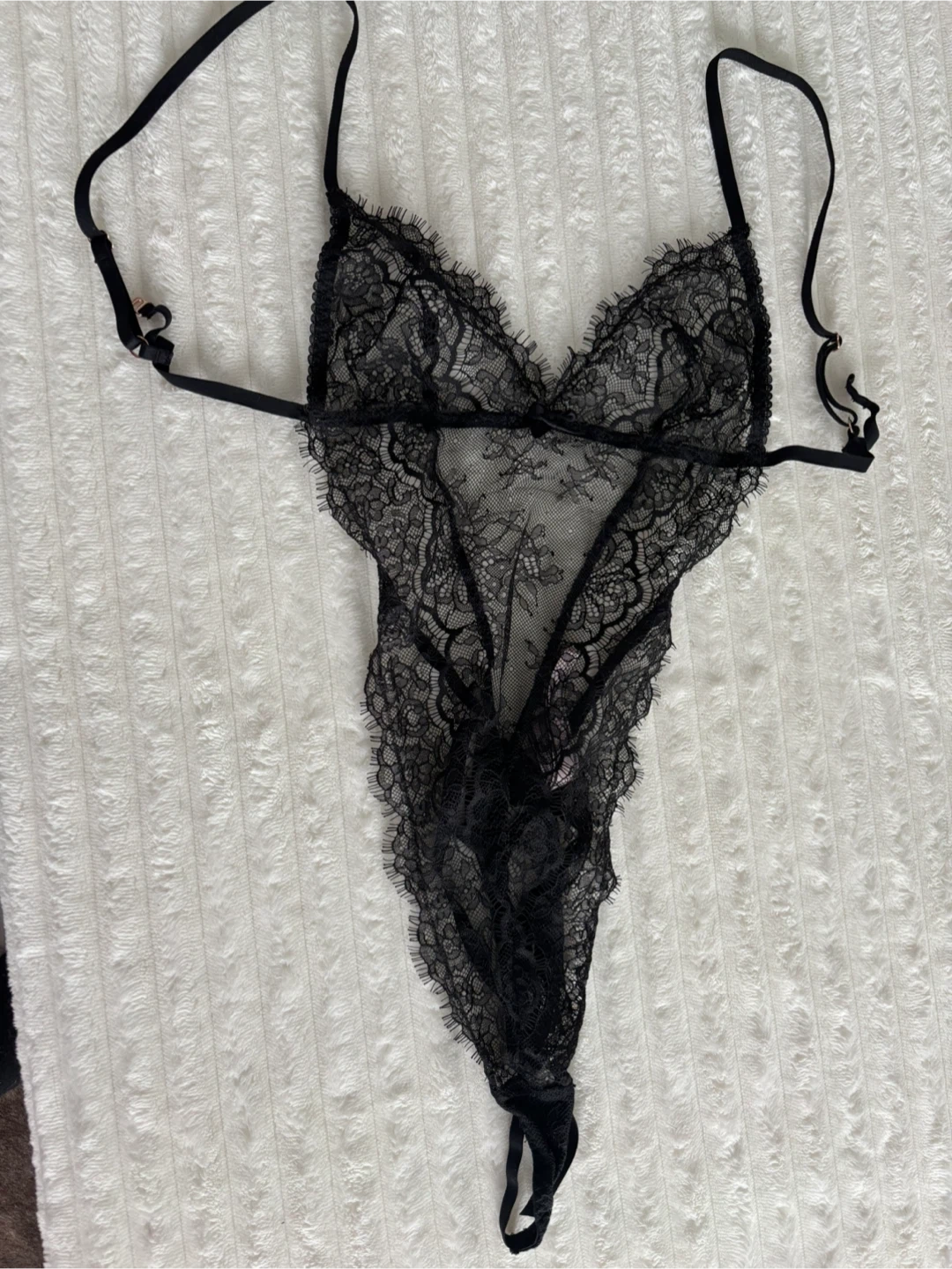 Selling a beautiful black lace teddy from Victoria's Secret. It's a size S/P. The lace detailing is really stunning!