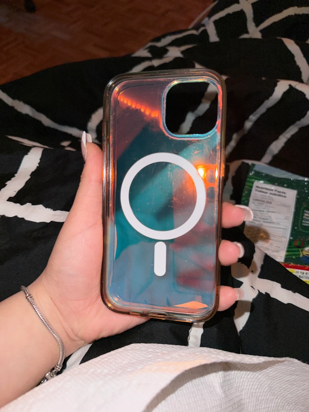 Selling a really pretty iridescent iPhone 14 case with MagSafe! It's in great condition and adds a fun pop of colour to your phone
