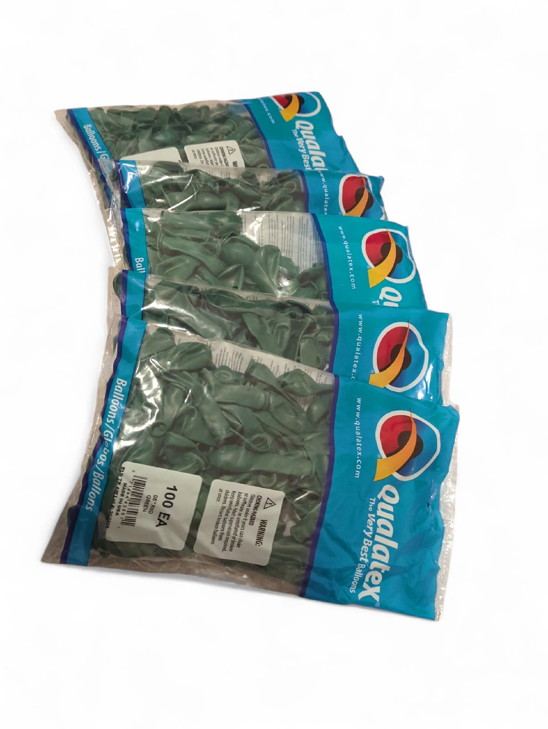 10I have several packs of Qualatex 05" Round Green Balloons for sale! Each pack contains 100 balloons. They're perfect for parties, events, or any celebration where you need a pop of colour! Made in the USA
