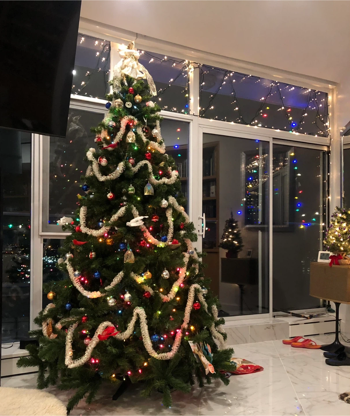 247Tree Comes in a huge Rubbermaid bin, excellent quality each branch comes off the tree and it is very full. Lights are not mounted on tree so you can decorate as you please. Tree with bin and lights included for $150. Decorations are separate and not included as most are vintage glass