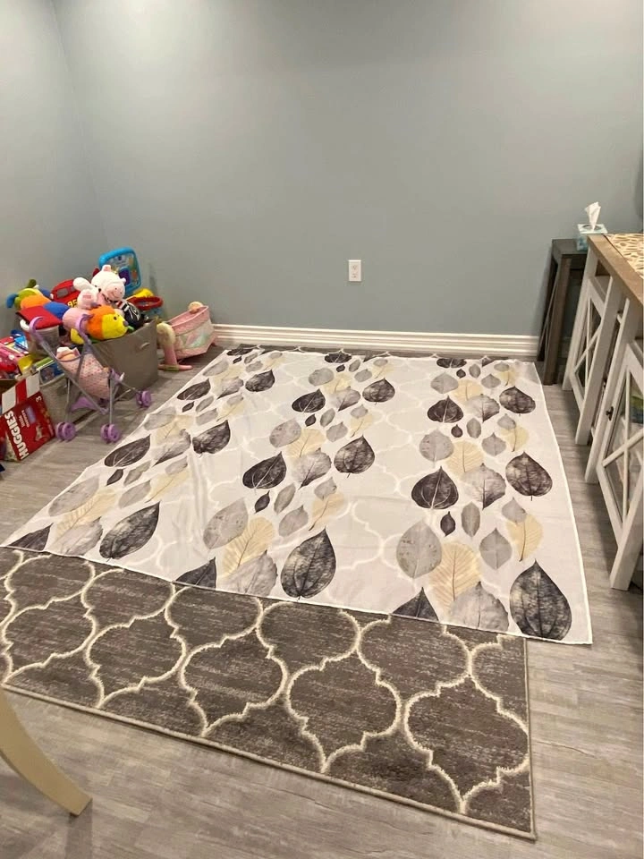 Gray, taupe and white coloured. 70”x70” perfect condition
