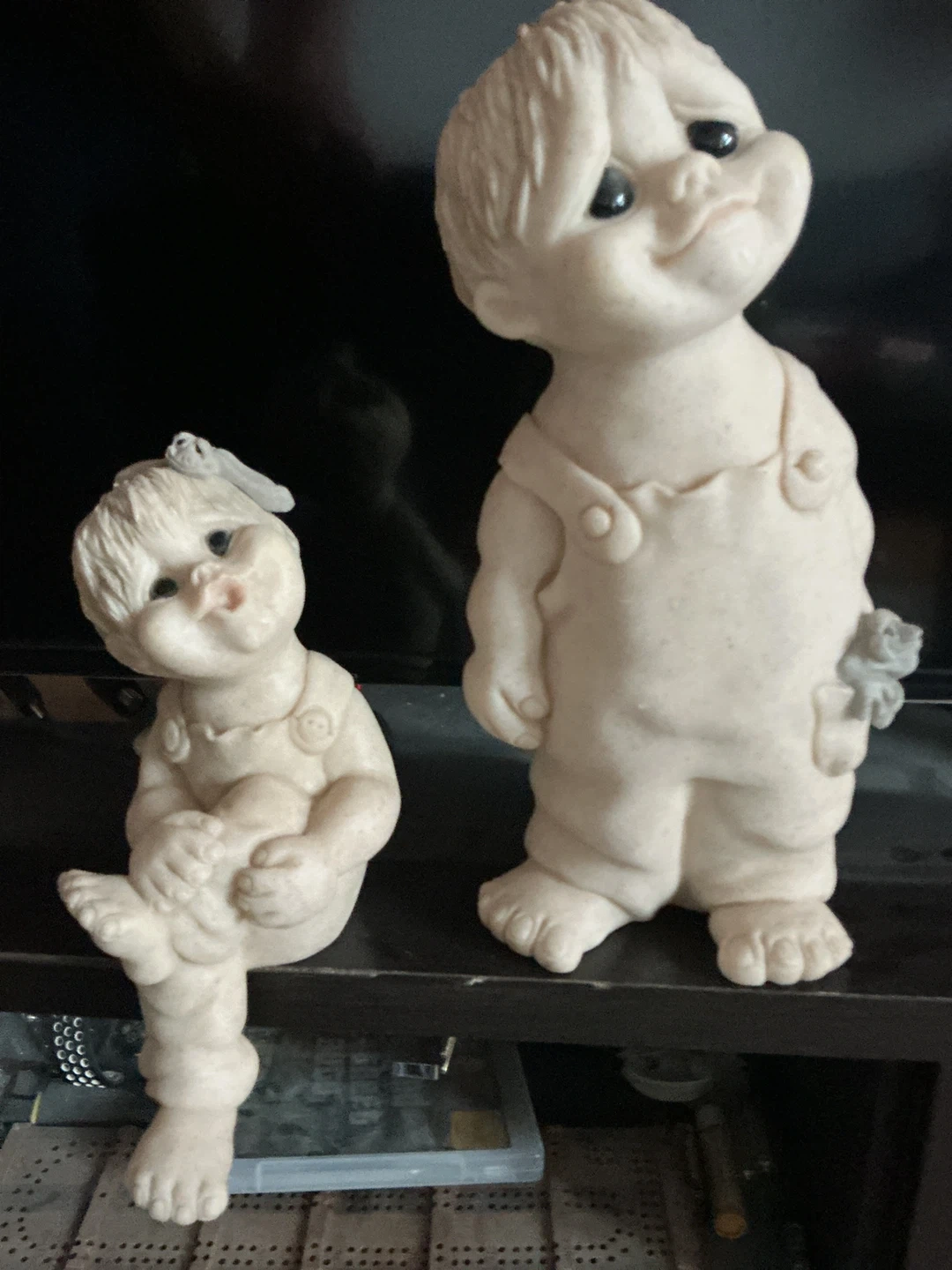 136These are two cute vintage figurines of a boy and a girl. They are made of a light-coloured material and would look great on a shelf or mantelpiece!