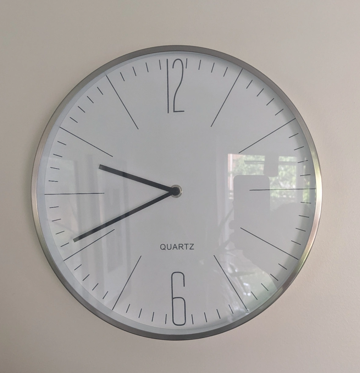 Selling a simple quartz wall clock. It has a clean, minimalist design with a white face and silver-tone frame. Perfect for any room!