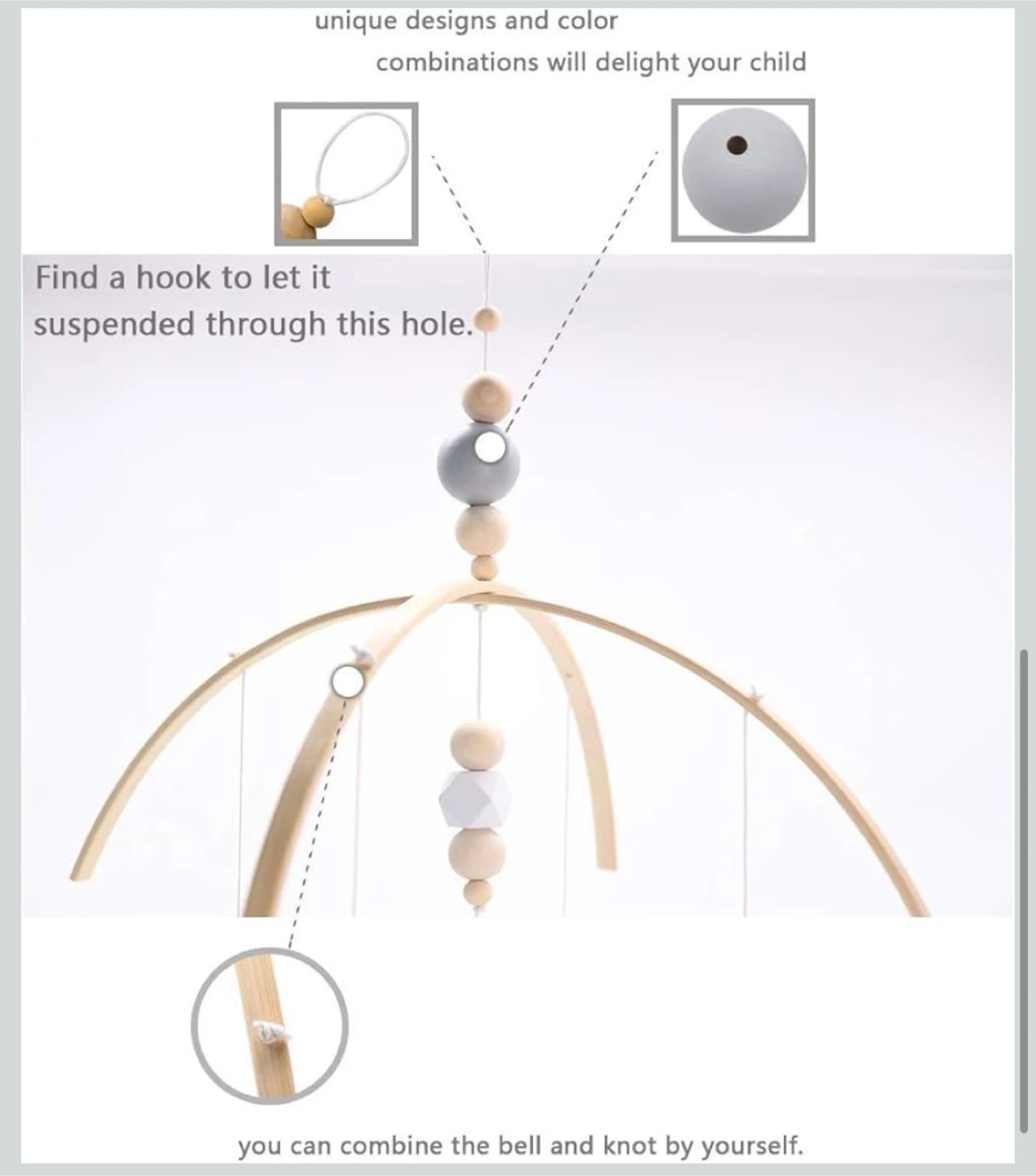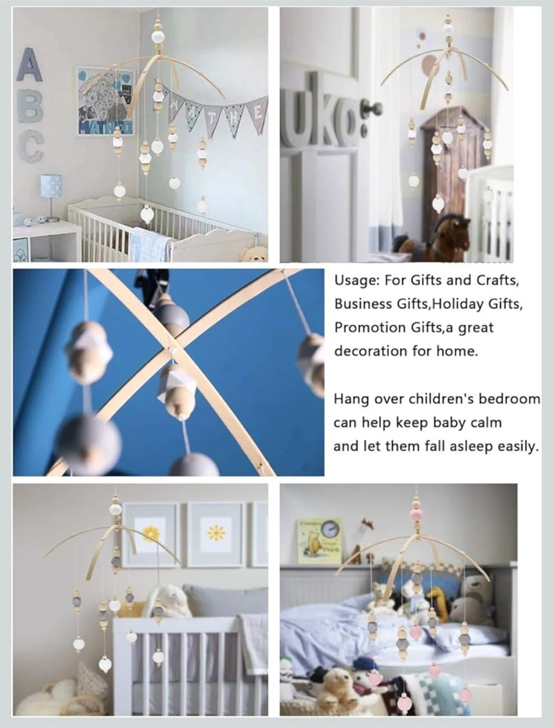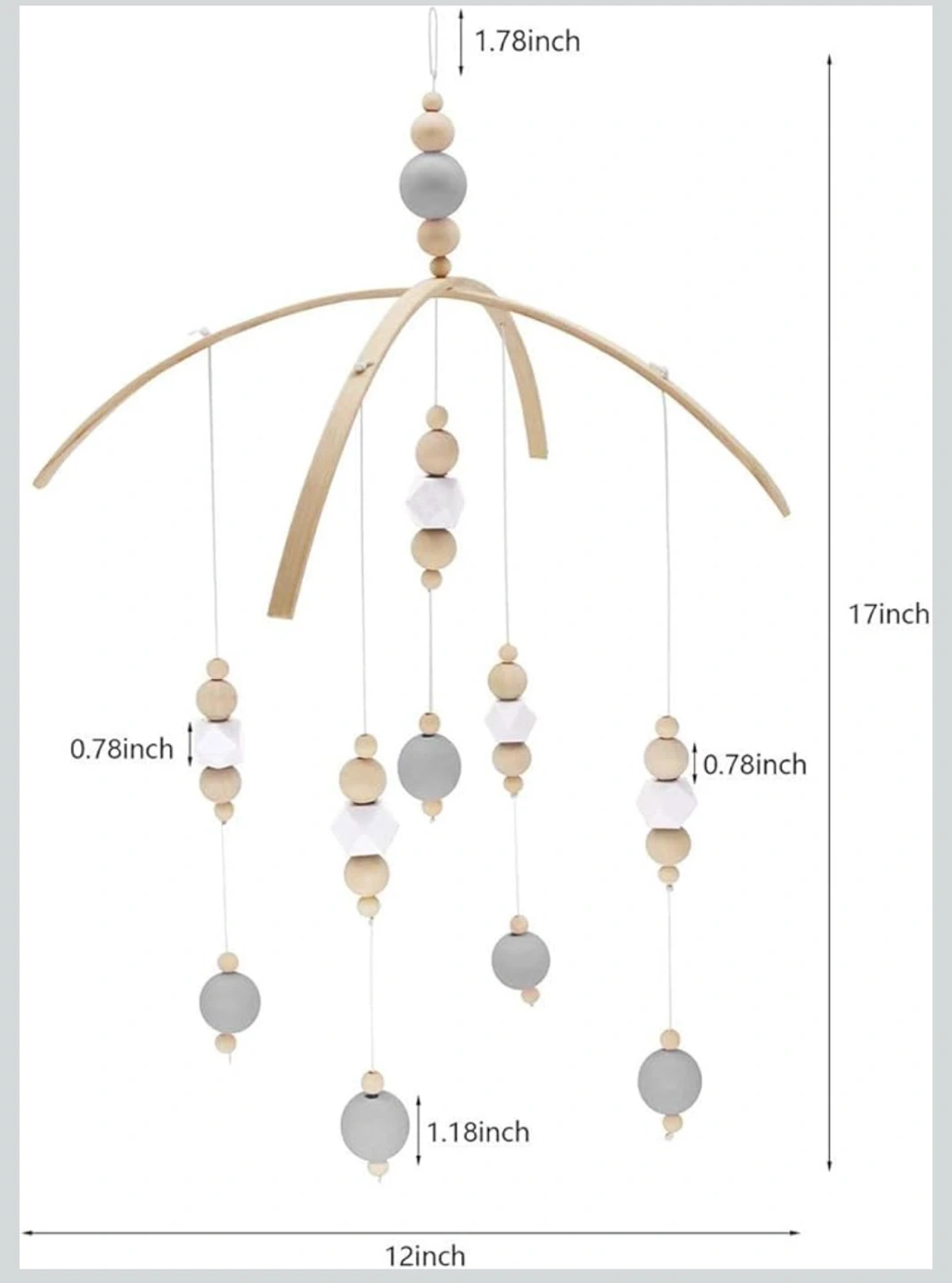 This Nordic-style baby mobile is crafted with wooden beads, making it safe for your little one to play with. The cross design is both beautiful and firm, and the unique colour combinations will delight your child. It measures 12 inches wide and 17 inches high, with bead sizes ranging from 0.78 to 1.78 inches. Perfect as a newborn gift or nursery decor!