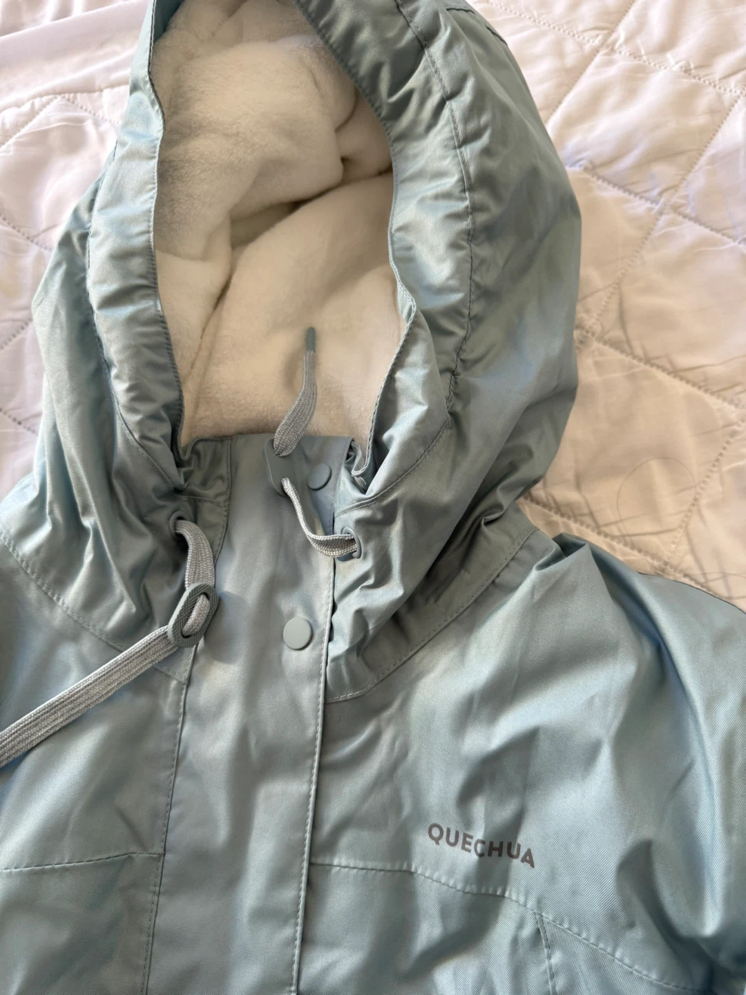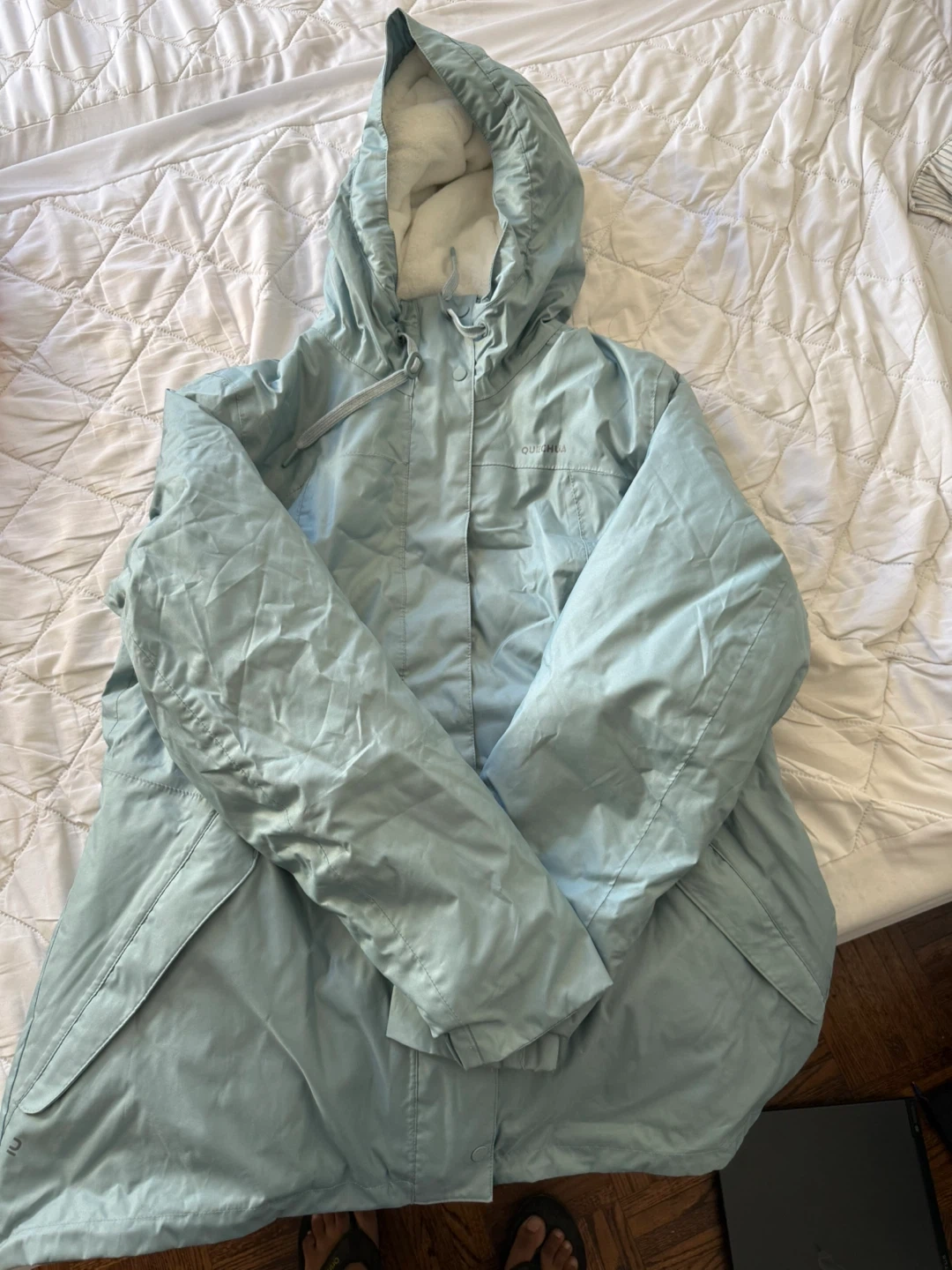 60Selling a Quechua women's rain jacket in size XL/TG. It's a lovely light blue colour and perfect for those rainy days. The jacket is in great condition and ready for a new home!