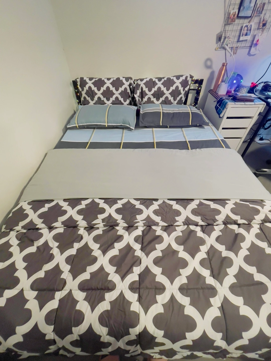 5The frame is in good condition with no visible damage. It is a standard queen size. The mattress will be sold separately for $250. Both bed and mattress are in perfectly great condition.