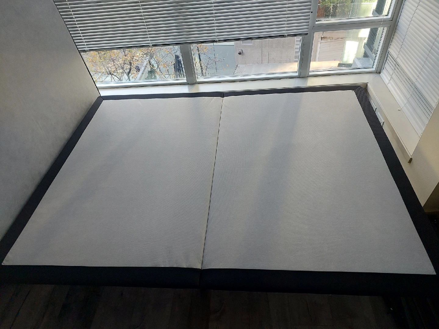 Selling a Queen Size Platform Base bed frame in impeccable condition. It's foldable, making it easy to transport and get through narrow spaces. Bought in February 2025 for 269CAD from Leon's for a guest bedroom so its hardly been used. Receipt available for verification. See link for further info: https://share.google/FSGsGig0gx5am1xCq - Durable fabric cover - Customizable height options: 4 inches, 8 1/2 inches, and 12 1/5 inches - Requires minimal effort to set up - Robust 800 lb weight capacity Dimensions: - Width: 59" (150cm) - Height: 14.75" (37cm) - Length: 79" (201cm) or 100.5cm folded