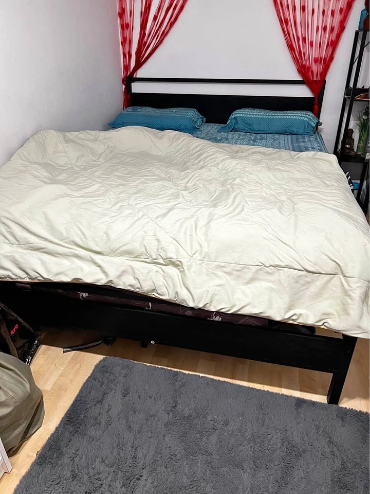 10It's a move out sale. Sturdy and stylish, this queen size bed frame offers excellent support with a modern design that fits perfectly into any bedroom. Built with durability in mind, it ensures long-lasting use while providing stability for your mattress. Easy to assemble and crafted for both function and appearance, this frame is the ideal foundation for a restful night’s sleep.