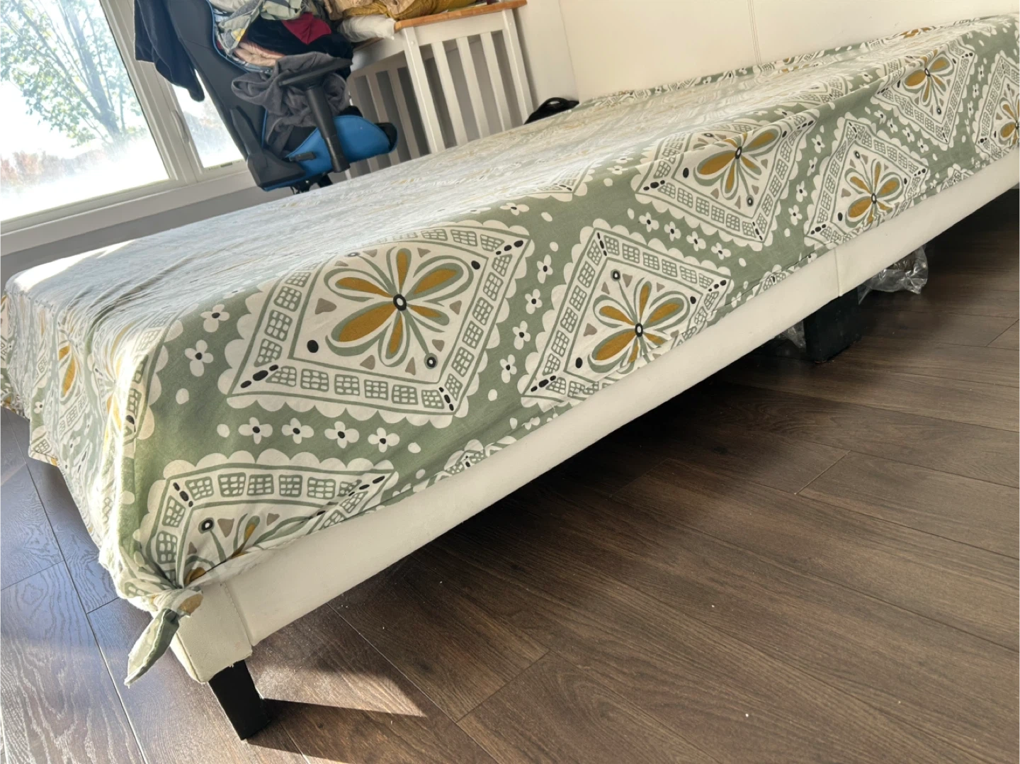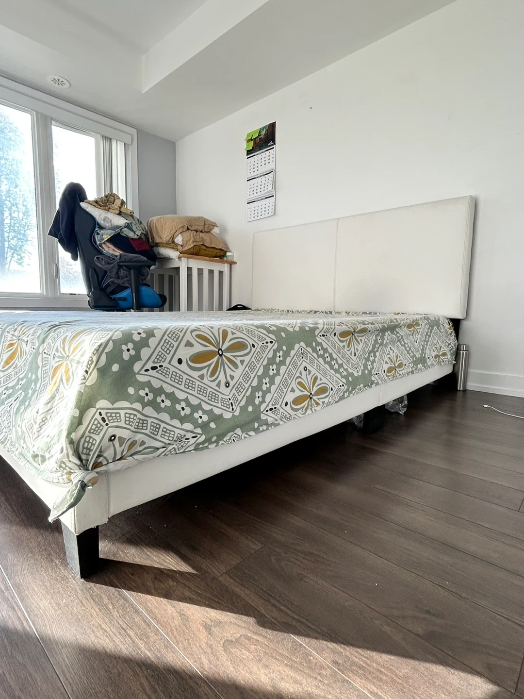 Selling a queen size bed frame with a headboard. It's in good condition and ready for a new home! The bed frame is sturdy and the headboard adds a nice touch to any bedroom. Perfect for a comfortable night's sleep! Moving out hence selling it.