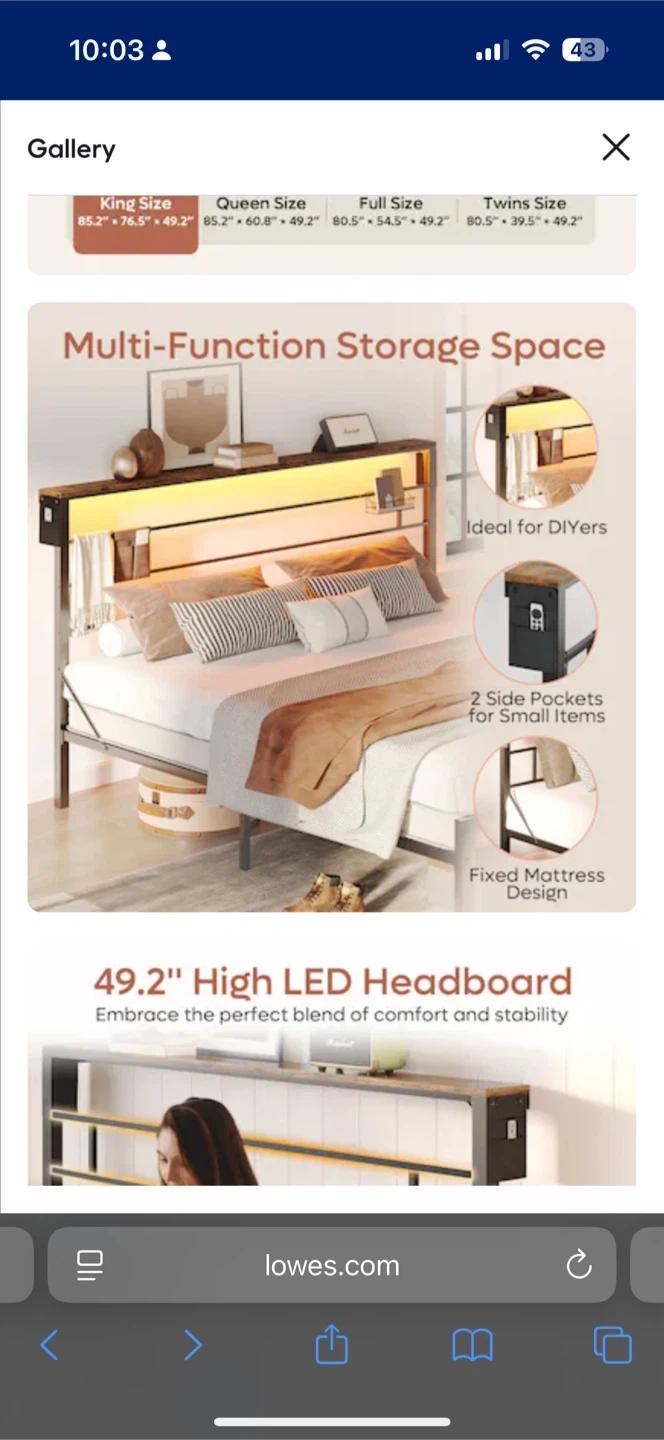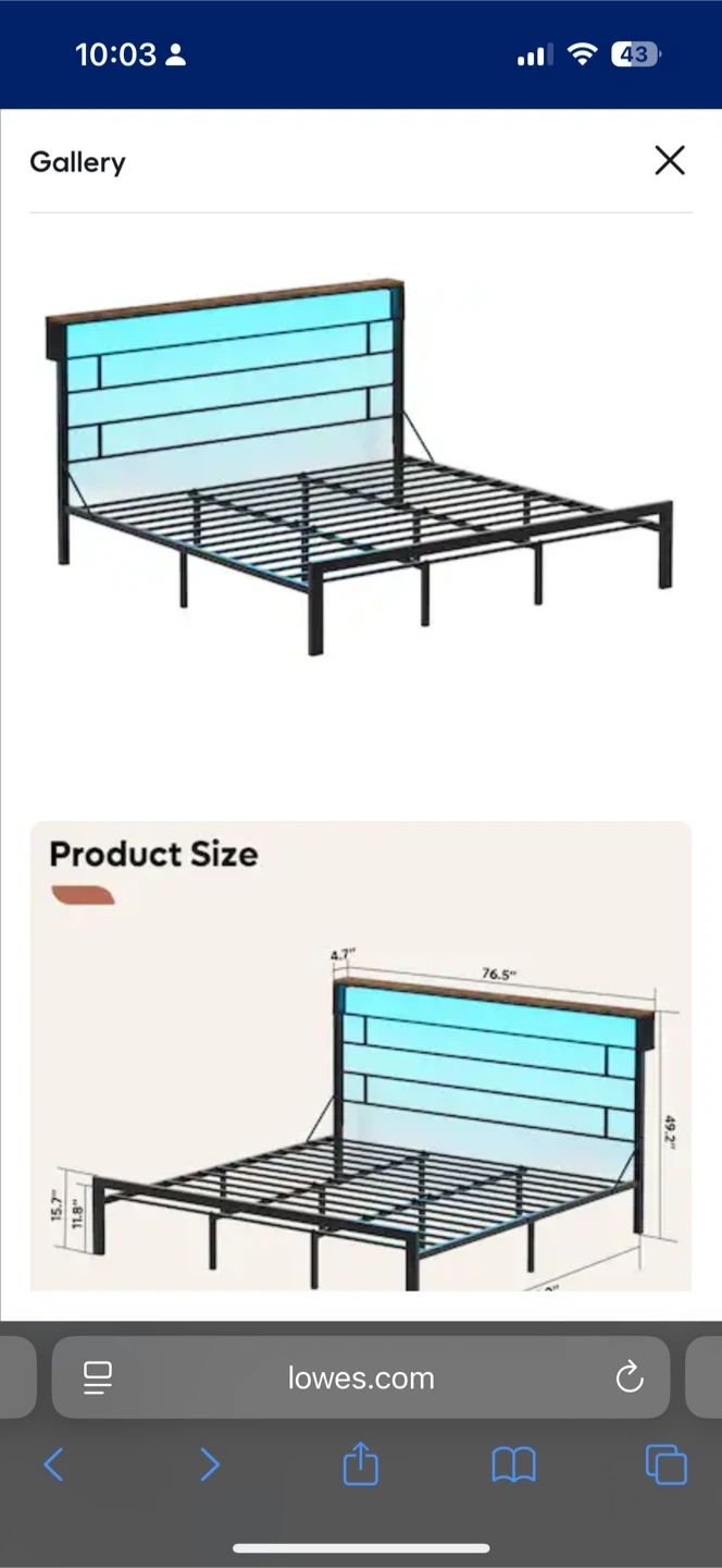 I'm selling a brand new Bestier Queen Size Bed Frame with an LED Headboard! It comes in the original box with all the components and accessories included. This bed frame features multi-function storage space, ideal for DIYers, and has two side pockets for small items. The LED headboard is 49.2" high, providing a perfect blend of comfort and stability. The dimensions for the Queen Size are 85.2" x 60.8" x 49.2".