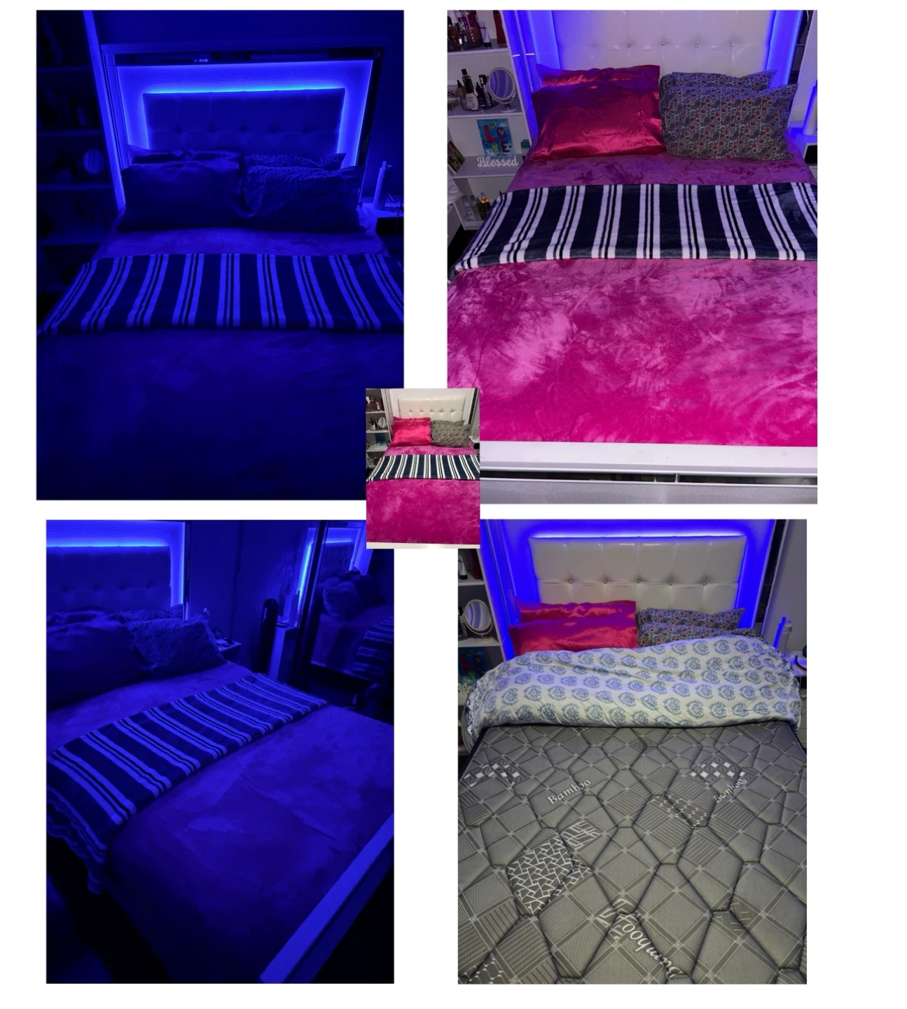 Selling a queen size bed frame! It features built-in LED lighting, perfect for creating a cozy atmosphere in your bedroom. The bed is in great condition and ready for a new home. It includes mattress,box spring and bed frame.