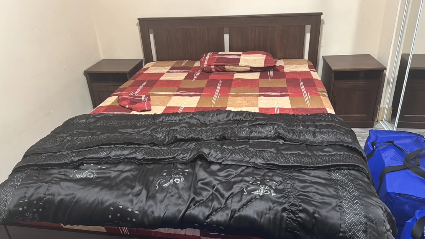10Selling a queen size bed frame with two matching nightstands. The set is a dark brown colour and in good condition. Perfect for a bedroom makeover!