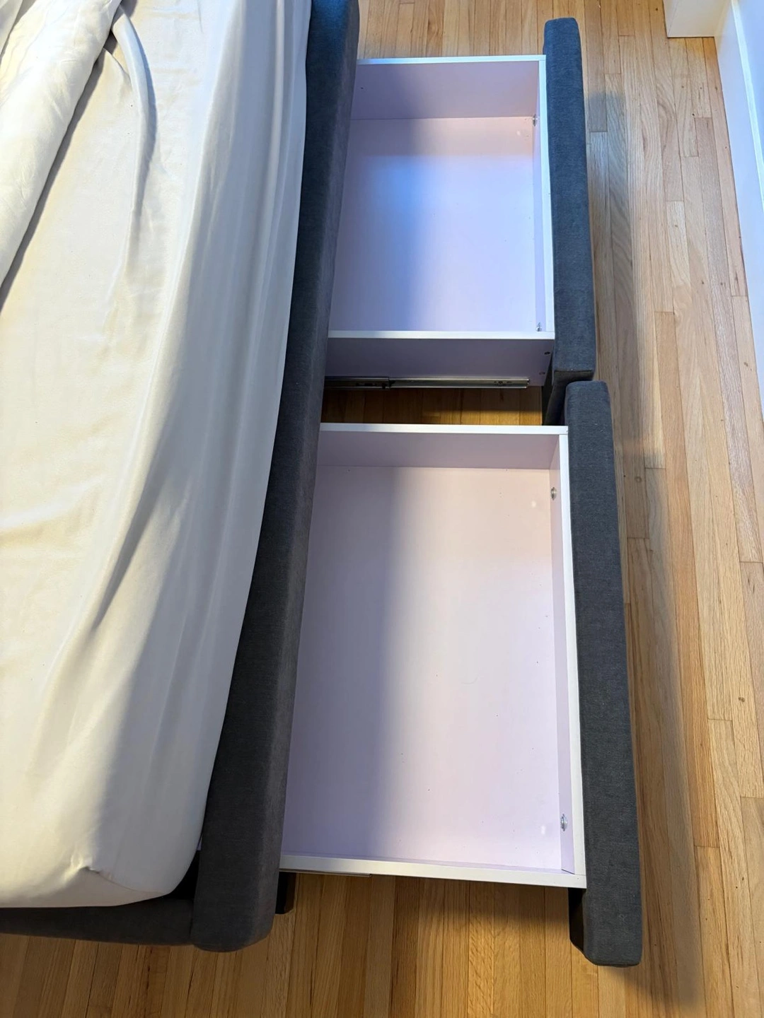 Selling a queen size bed frame and mattress! It's in great condition, and features convenient built-in storage drawers. Perfect for adding extra space to your bedroom. If you're interested, send me a message! Not even a month old. Bought brand new and have had to move home unexpectedly.